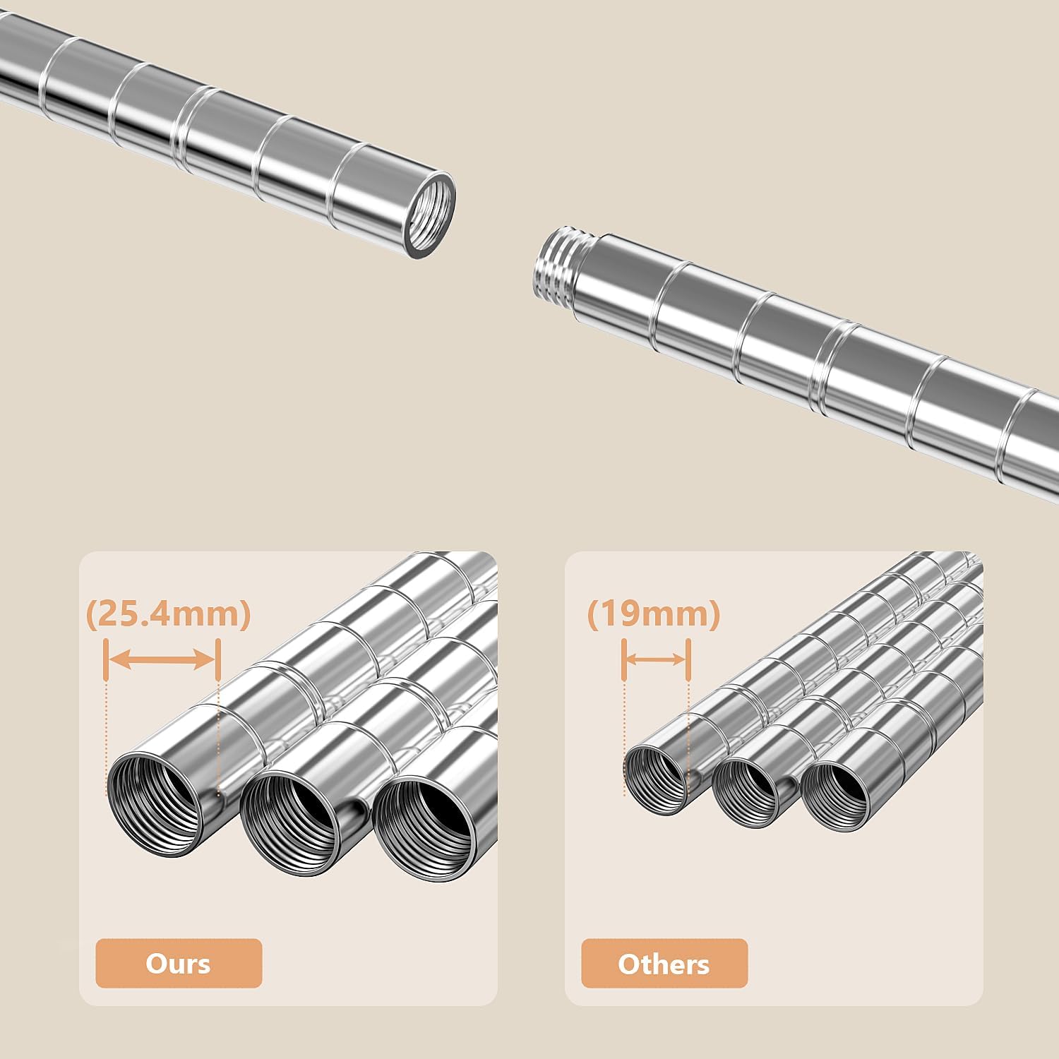 - Sturdy And Long-lasting: The garment rack is made of high-quality carbon steel and anti-rust materials. The diameter of the pipe is 25.4 mm which is thicker than others, so that ensures stability, sturdiness, and durability