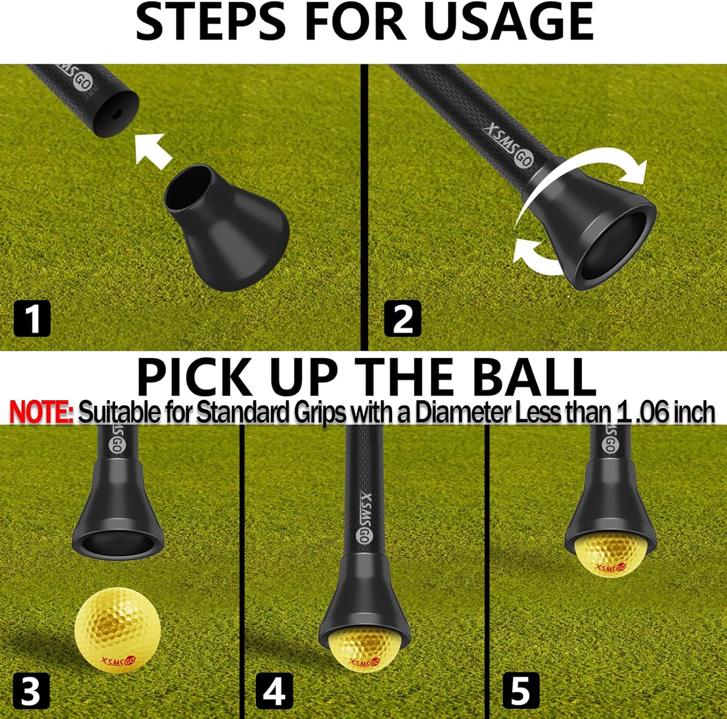 - 【PREVENT LOWER BACK INJURIES】: The Golf ball pick-up tools have been experimentally proven to pick up balls quickly and accurately without having to look down to prevent lower back injuries.(Suitable For Standard Grips With A Diameter Less Than 1.06 Inches)