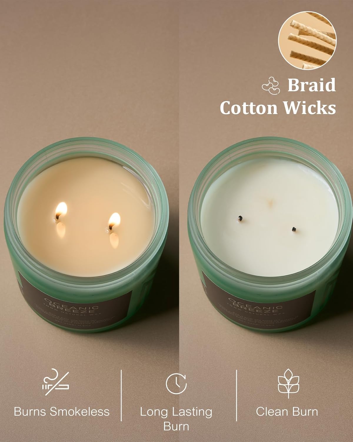 - š³ Clean Consistent & Even Burn - Using 2 American made lead-free cotton wicks for a even burn result. They're cotton flat braid wicks with paper throughout, providing increased rigidity and burn more consistently than 100% cotton wicks. Designed to reduce carbon buildup which leads to black soot.