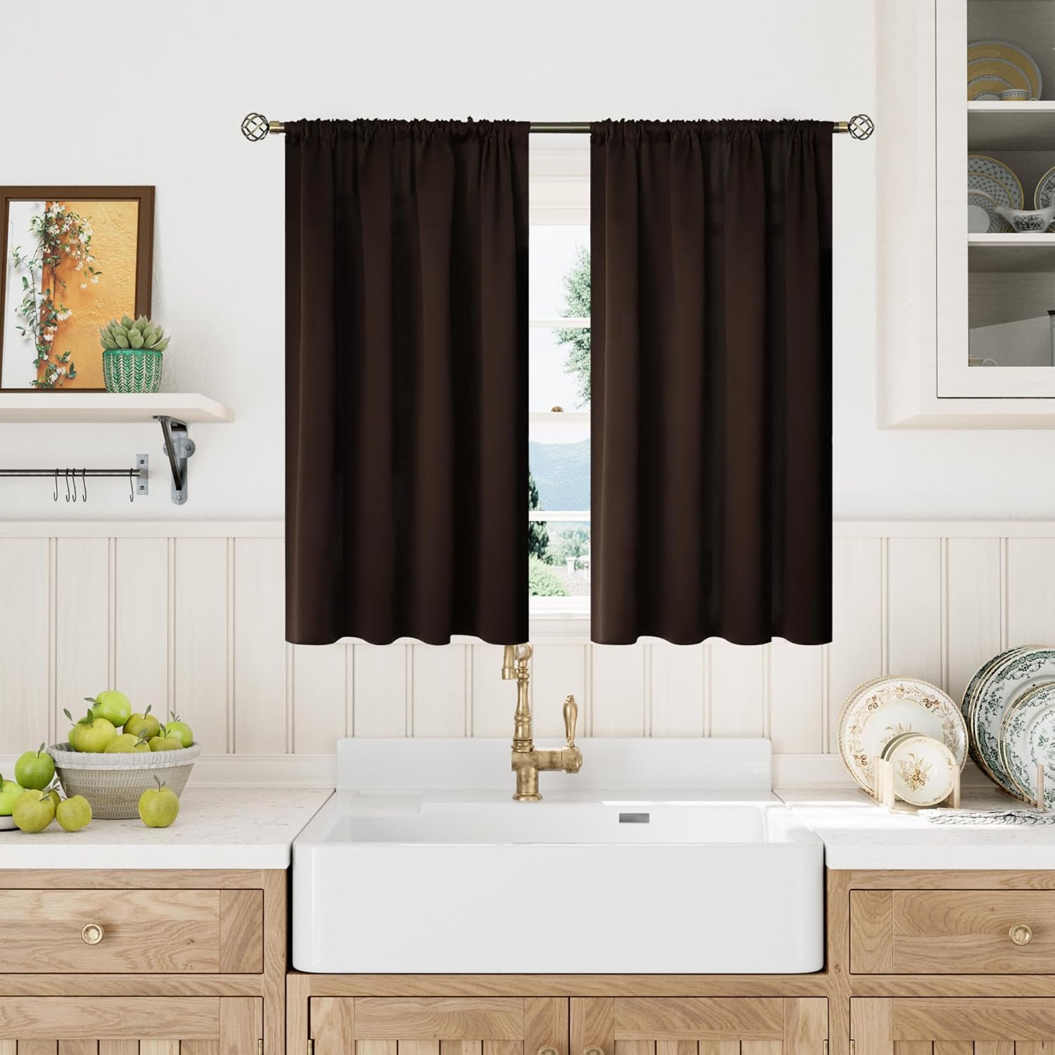 - Package Includes: Set of 2 brown blackout curtains; each panel measures 42 Inch wide by 40 Inch long.