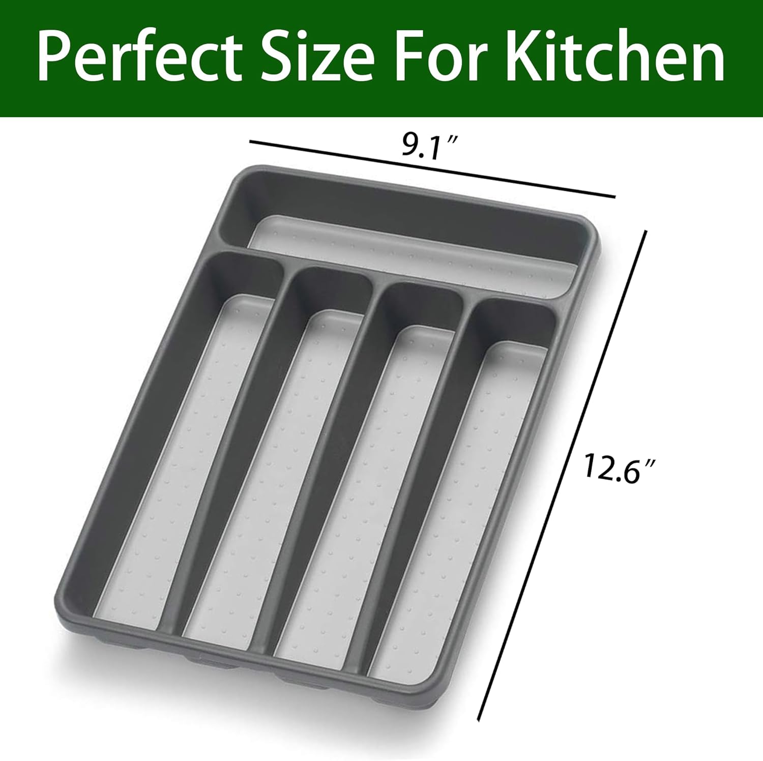 - ✅【Perfect size for any drawer】Measuring at 12.6’’L x 9.1”W x 1.8”H, our utensil organizer fits both standard and small-sized drawers. Its depth allows you to store multiple utensils in a single compartment without worrying about them getting tangled. Plus, the non-slip design ensures your cutlery stays secure during drawer use.