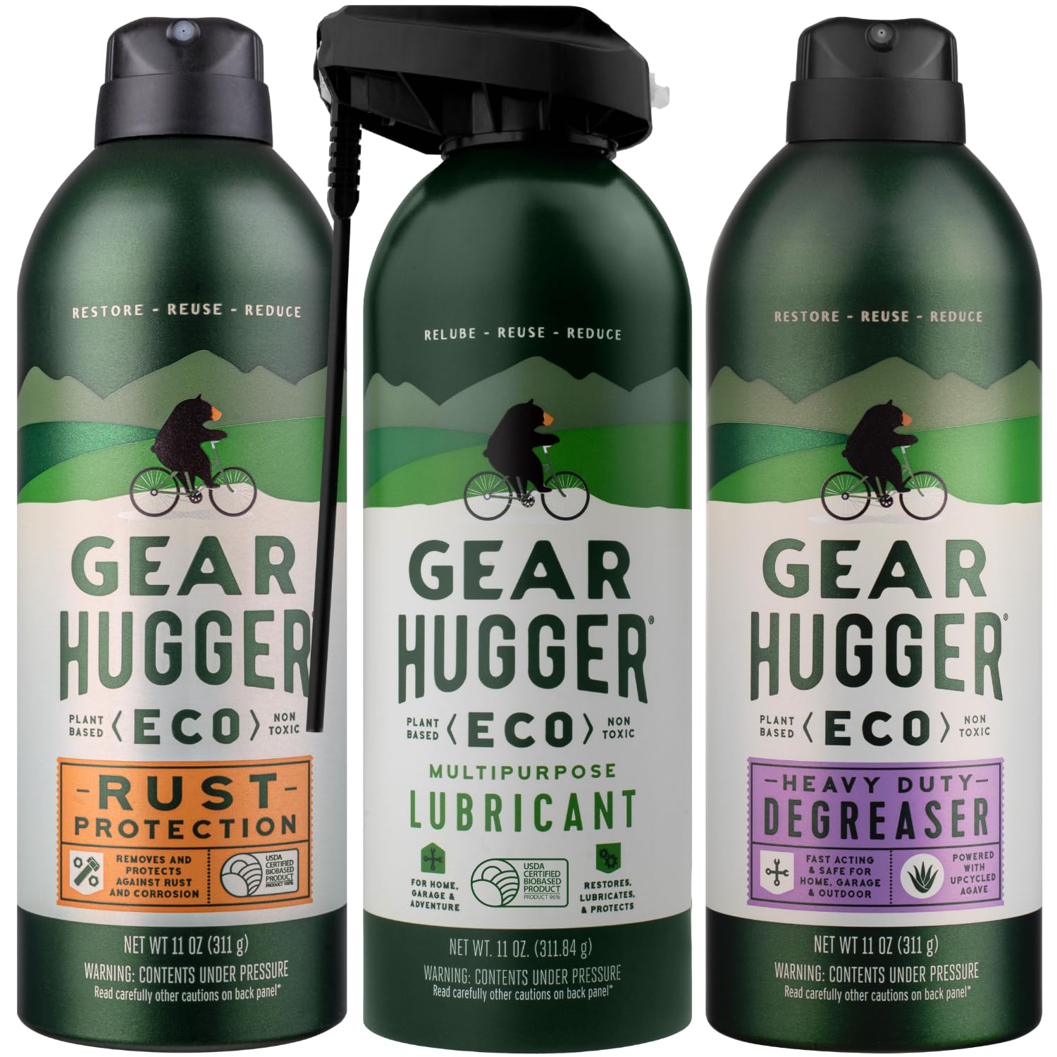 Gear Hugger Lubricant, Degreaser & Rust Remover - Eco-Friendly (11 oz, Pack of 3), Garage Door Lubricant Spray, Heavy Duty Oven Cleaner & Rust Protection - Plant-Based, No Petroleum, No PTFE, Green