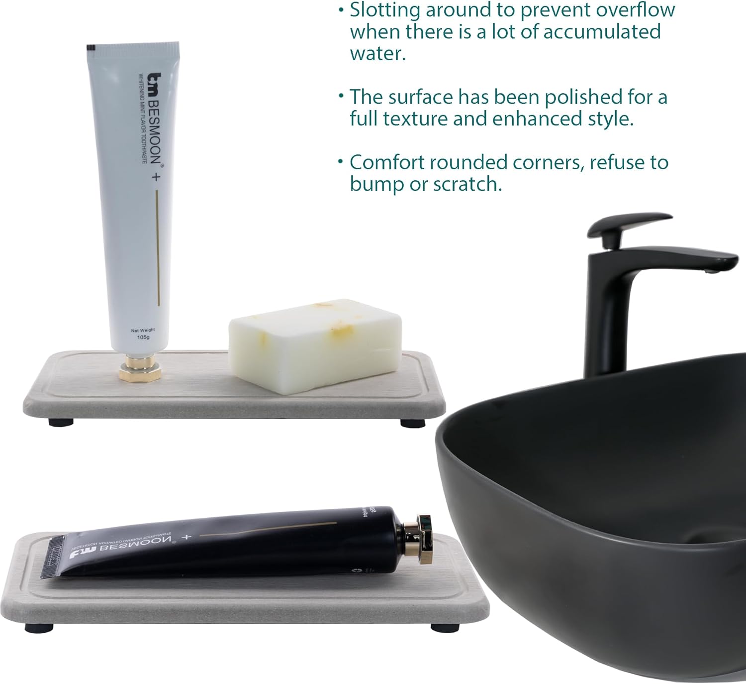 - ✅Suitable to be used as absorbent mats for soaps / cups / soap bottle / dish sponge / make-up bottles, and anywhere you need to absorb water quickly and keep the table / countertop surface dry.