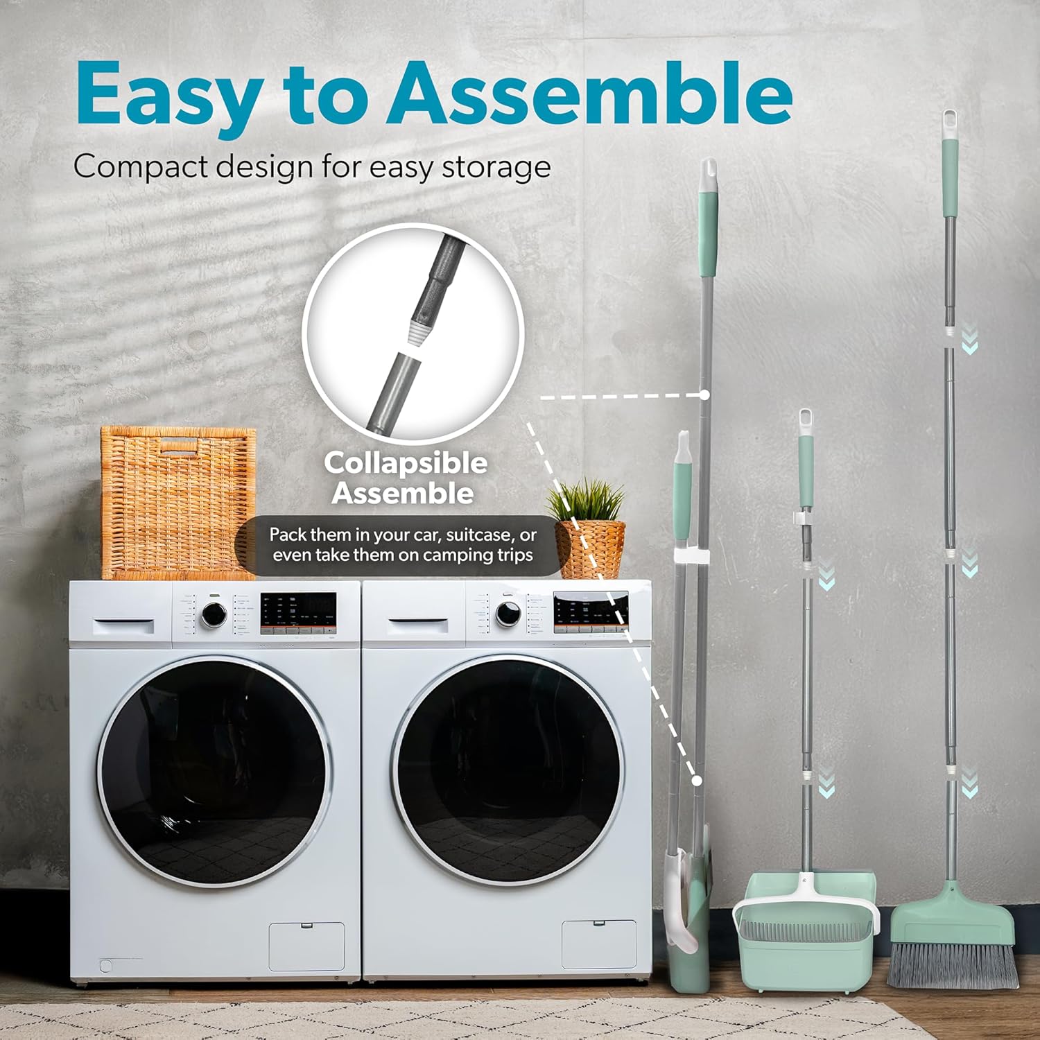 - Durable Construction: Made from high-quality materials, the broom and dustpan are built to last, withstanding repeated use without losing its effectiveness. Ergonomic Design: The broom and dustpan have an ergonomic design that ensures comfortable use for extended periods. The broom handle is long enough to accommodate users of different heights, reducing back strain.