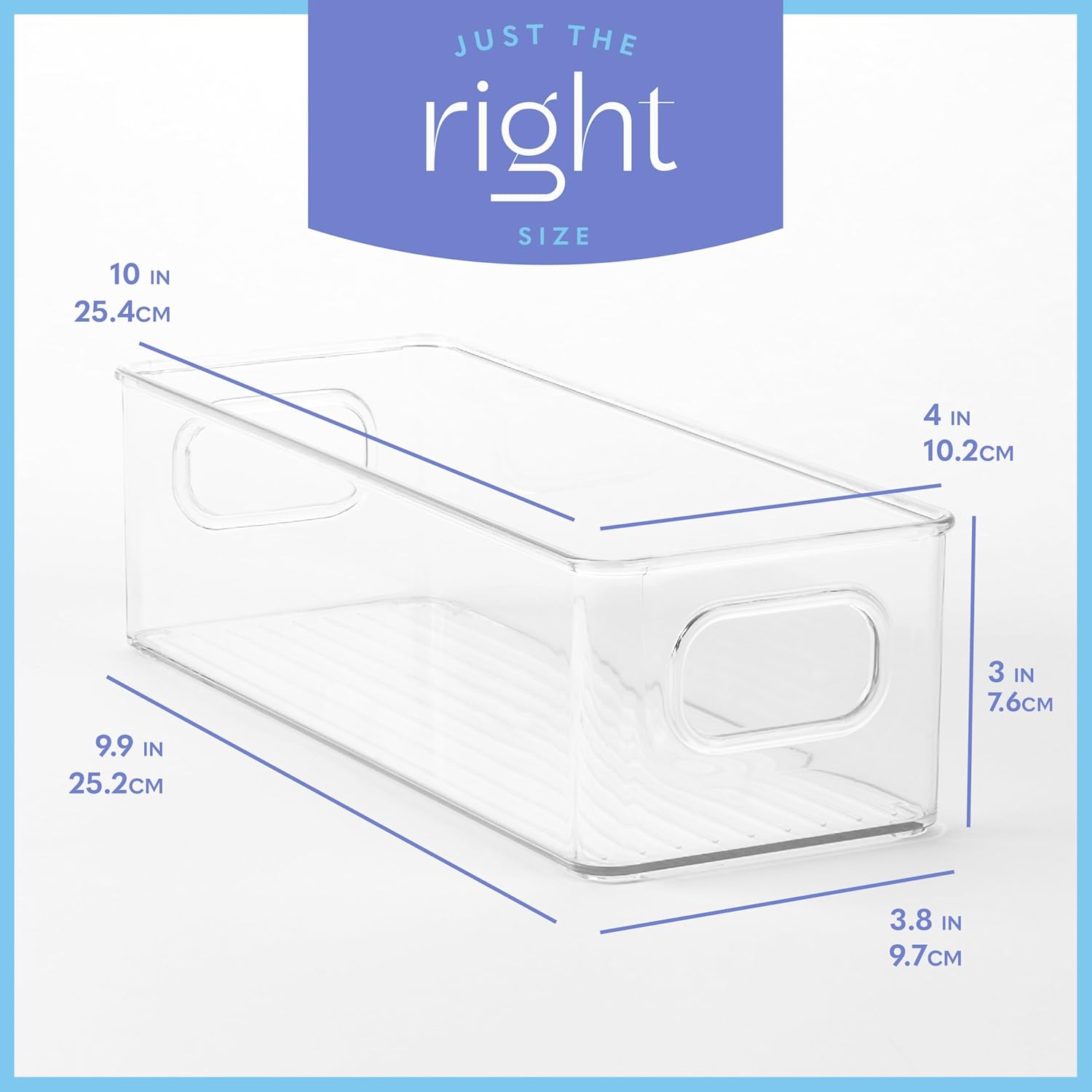 Plastic Food Storage Clear Container Bin with Handles for Organizing Kitchen, Pantry, Refrigerator, Freezer, Pantry, Cabinet, Closet, Bathroom. 10"X4"3"