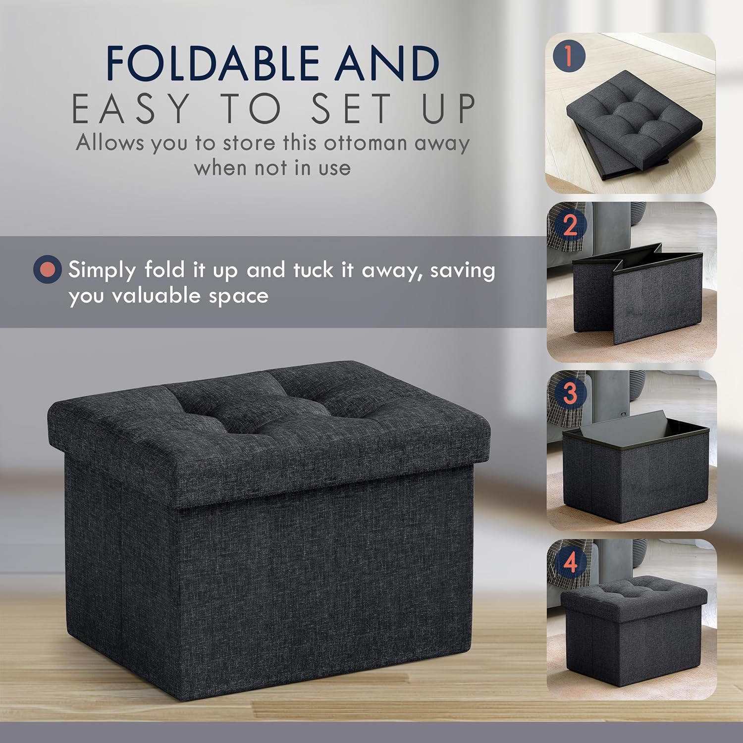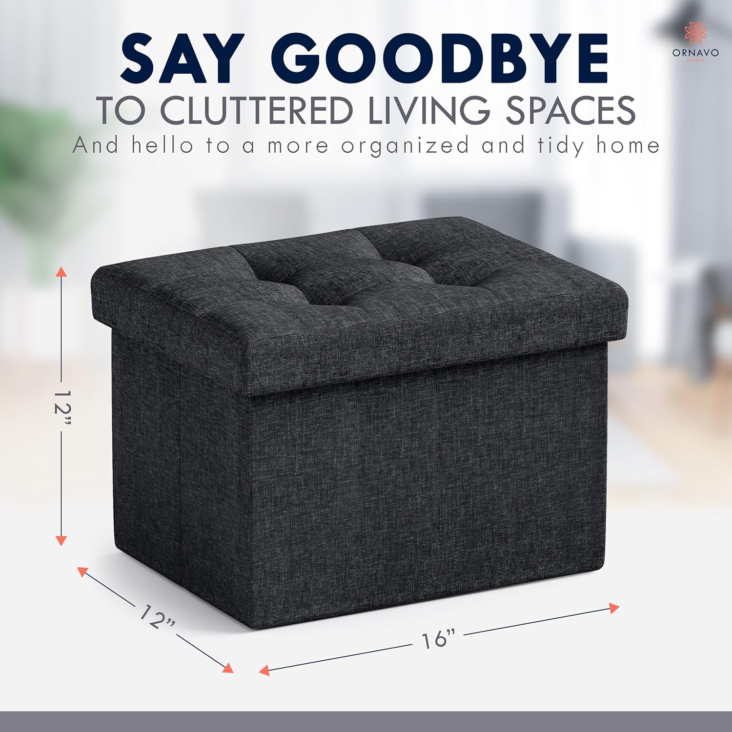 Ornavo Home Small Storage Ottoman Foldable Collapsible Rectangle Linen Ottoman Foot Rest Stool Seat, for Living Room, Bedroom, Home Office, Dorm - 12 x 16 x 12, Black