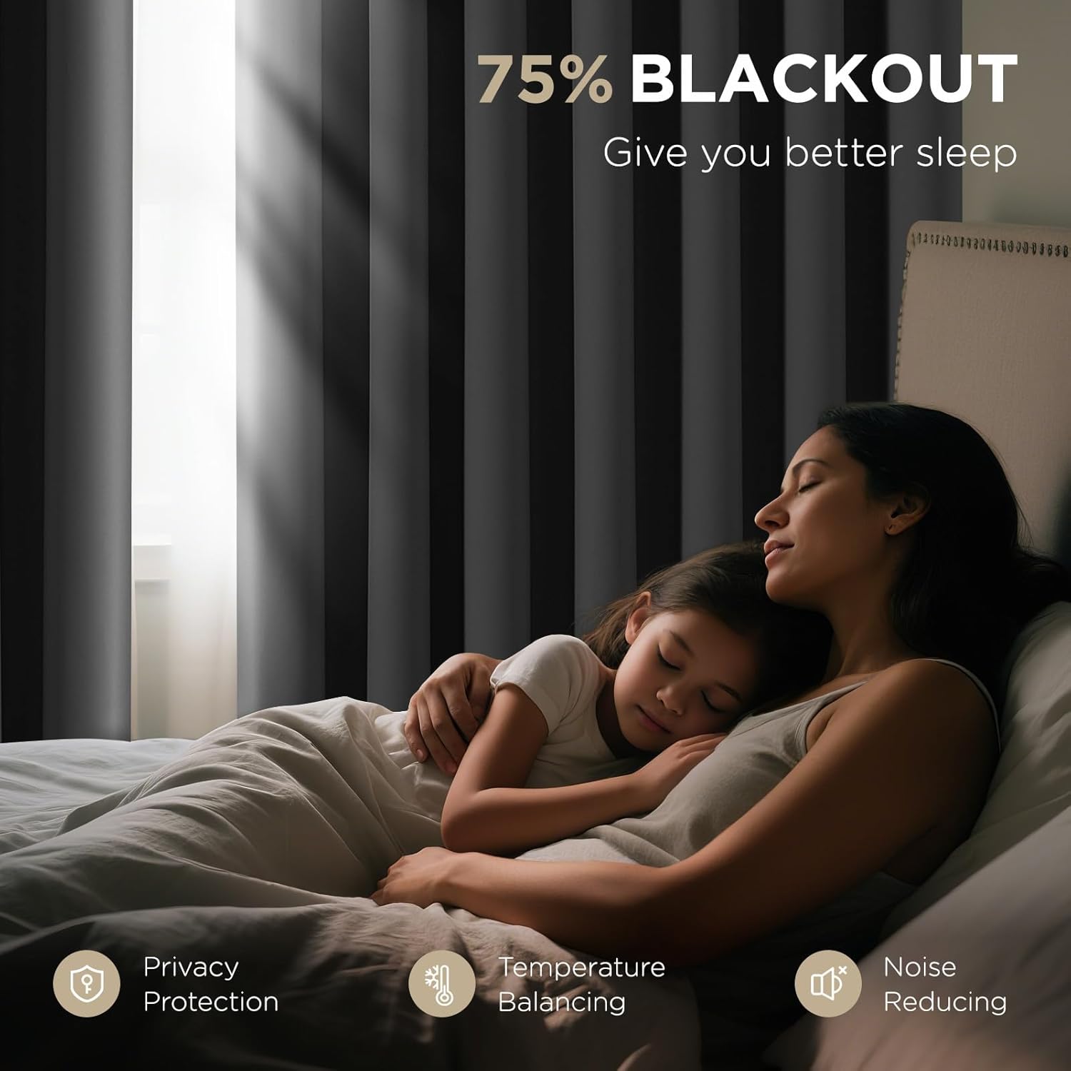 - 【Blackout Performance】Your go-to choice for adjusting indoor light! These curtains block over 75% of sunlight and outdoor glare, creating a cozier atmosphere in bedrooms, living rooms, and more. They also provide excellent privacy protection for your home. Pro Tip: Darker-colored curtains offer even better blackout effects.