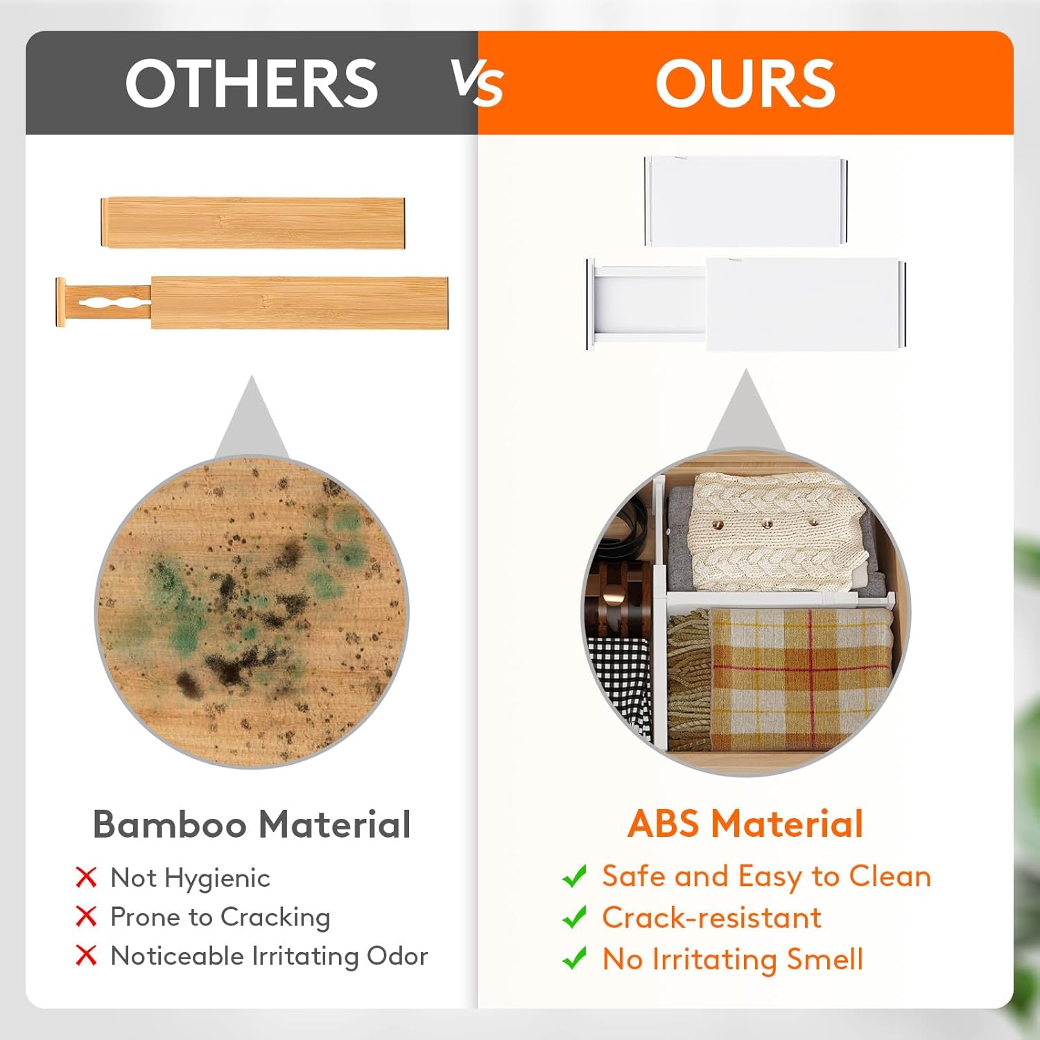 - Advanced Design: Our dresser organizer is made from stable ABS material and has high-quality EVA foam sponges at the ends to prevent scratches and damage to drawer walls, leaving no trace or residue. Additionally, our divider is patented (Patent No: US12133593B2) for a unique experience.