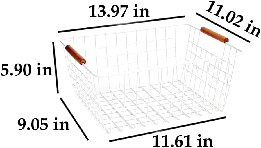 LeleCAT Large white wire baskets with Wooden Handles for storage pantry, Storage Organizer Baskets, Household Refrigerator for Cabinets, Closets, Bedrooms, kitchen - Set of 3 White