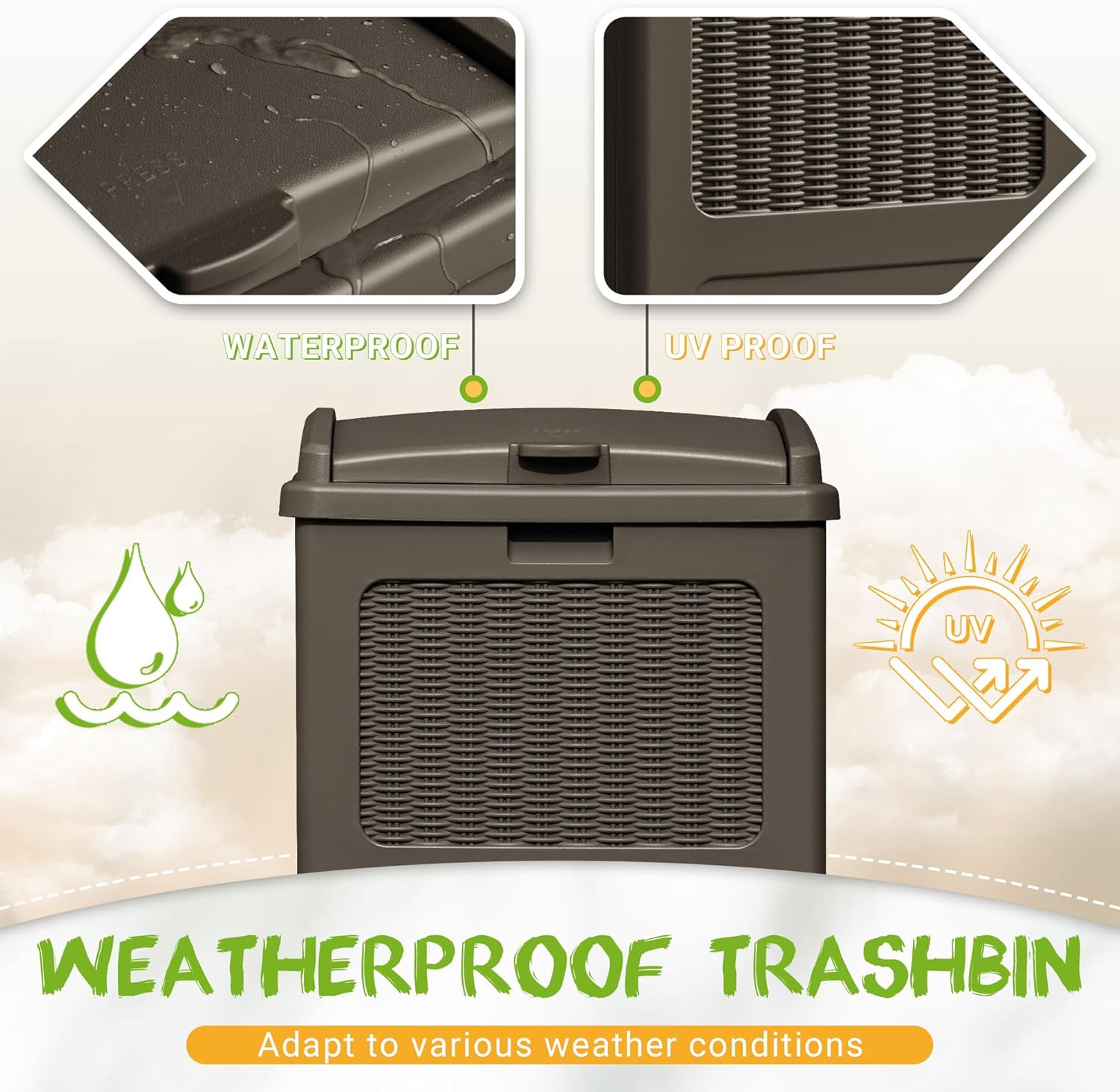 YESHOMY 33 Gallon Resin Outdoor Trash Can with Lid, Hideaway Waterproof Patio Garbage Bin, Brown