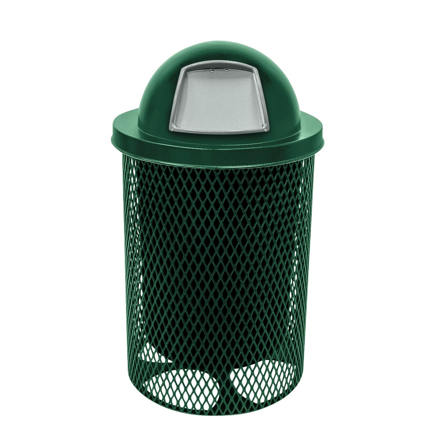 COATEDOUTDOORFURNITURE RDT-TXTGRN Heavy Duty 32 Gallon Round Trash Receptacle, Liner Included, Textured Green with Textured Green Steel Dome Top, Made in America