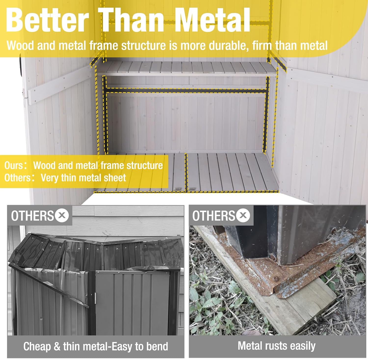 - Stable Construction: Reinforced with a robust metal frame, our outdoor garden shed offers unparalleled stability, ensuring it withstands various weather conditions for long lasting durability