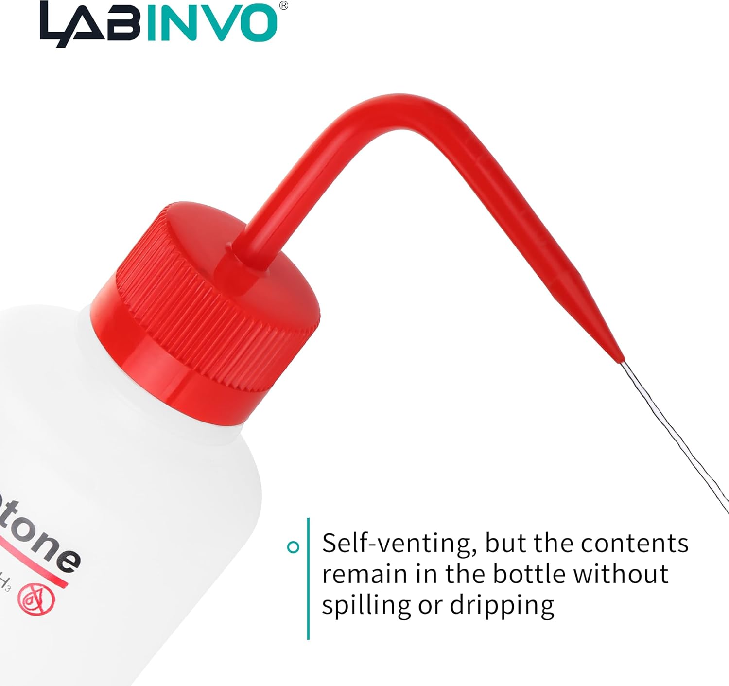 - Capacity: 6pcs of 500ml (17oz), each 1PC of acetone wash bottle , Ethyl alcohol wash bottle , Methanol wash bottle, Isopropanol wash bottle, Distilled water wash bottle and Sodium hypochloride wash bottle.