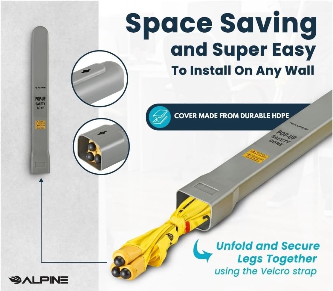 Alpine Caution Wet Floor Sign 3 Pack - Pop Up Slippery When Wet Sign, Wall Mounted Foldable Bilingual Yellow Safety Warning Caution Cone for Commercial & Office Use (20 Inches)