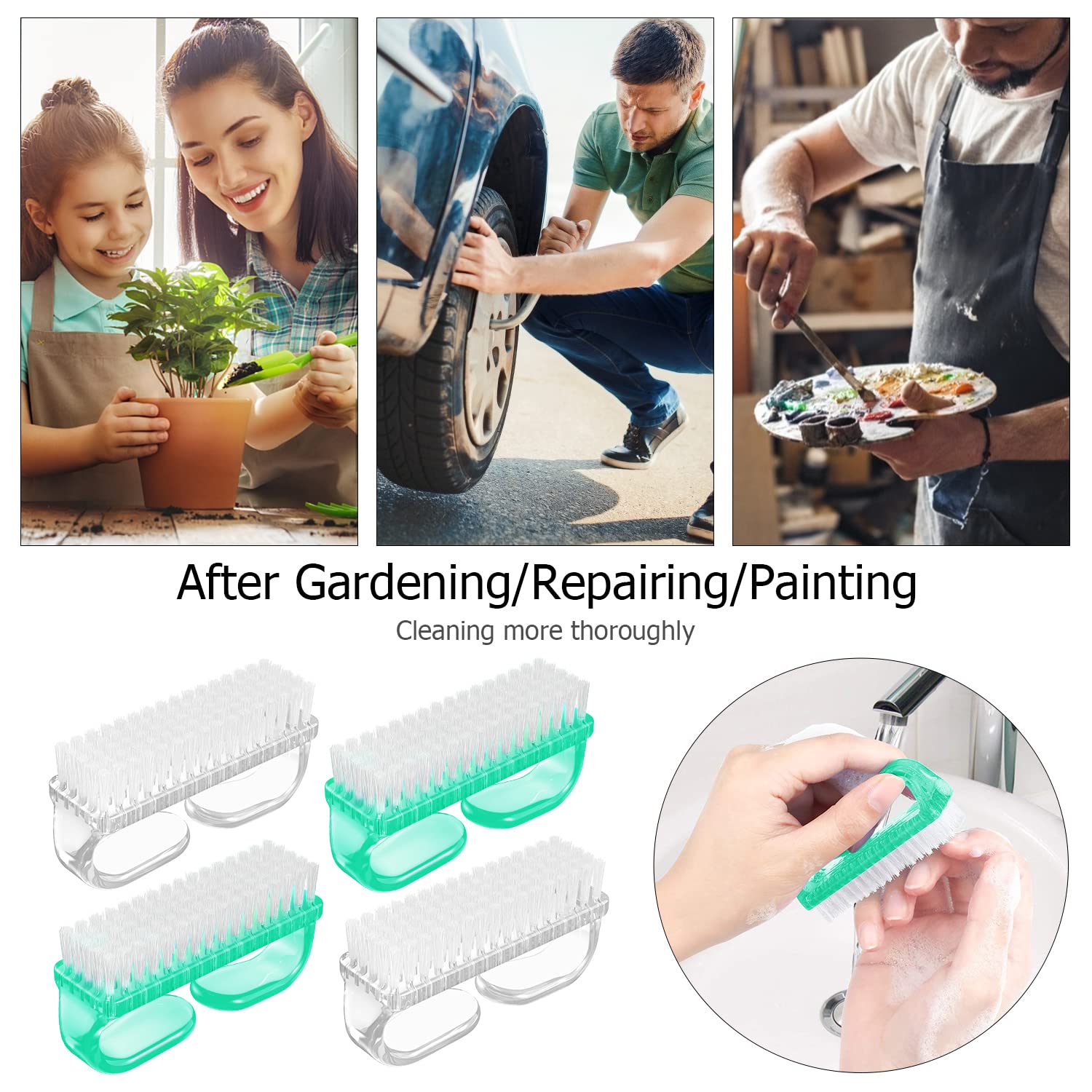 - 【New Design】: We have made some improvements. The Handle fingernail brushes have a larger gripping space, much easier to hold and convenient to use.