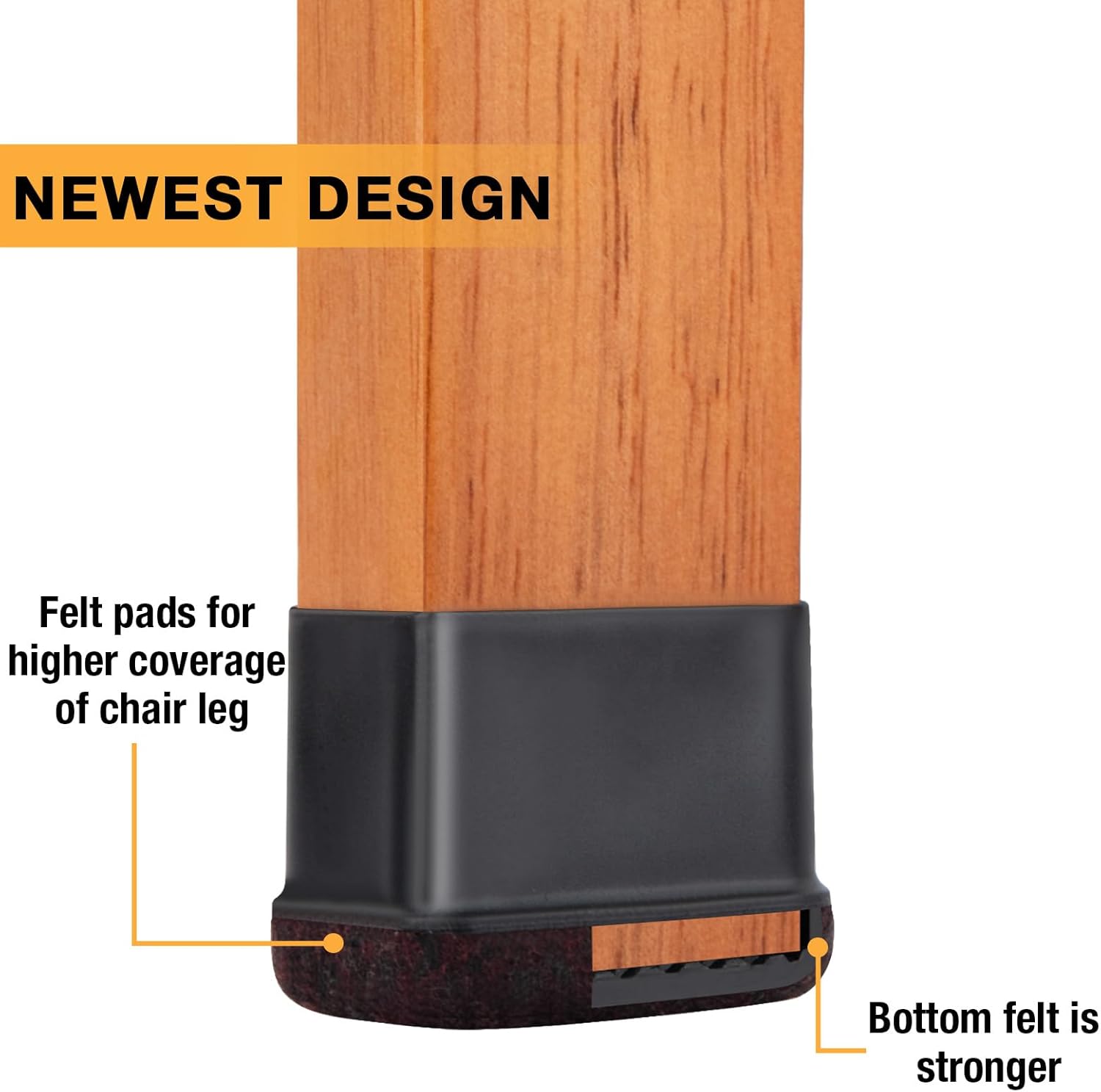 - 【Upgrade New Design】: 360° full felt pad bottom wrapped, which helps the felt bottom be able to touch the floor at any angle, preventing scratching the floor. Our chair leg floor protectors do not use gel. The bottom felt pad and the silicone chair leg floor protectors are integrated with a high-pressure machine to ensure that they will never fall off.
