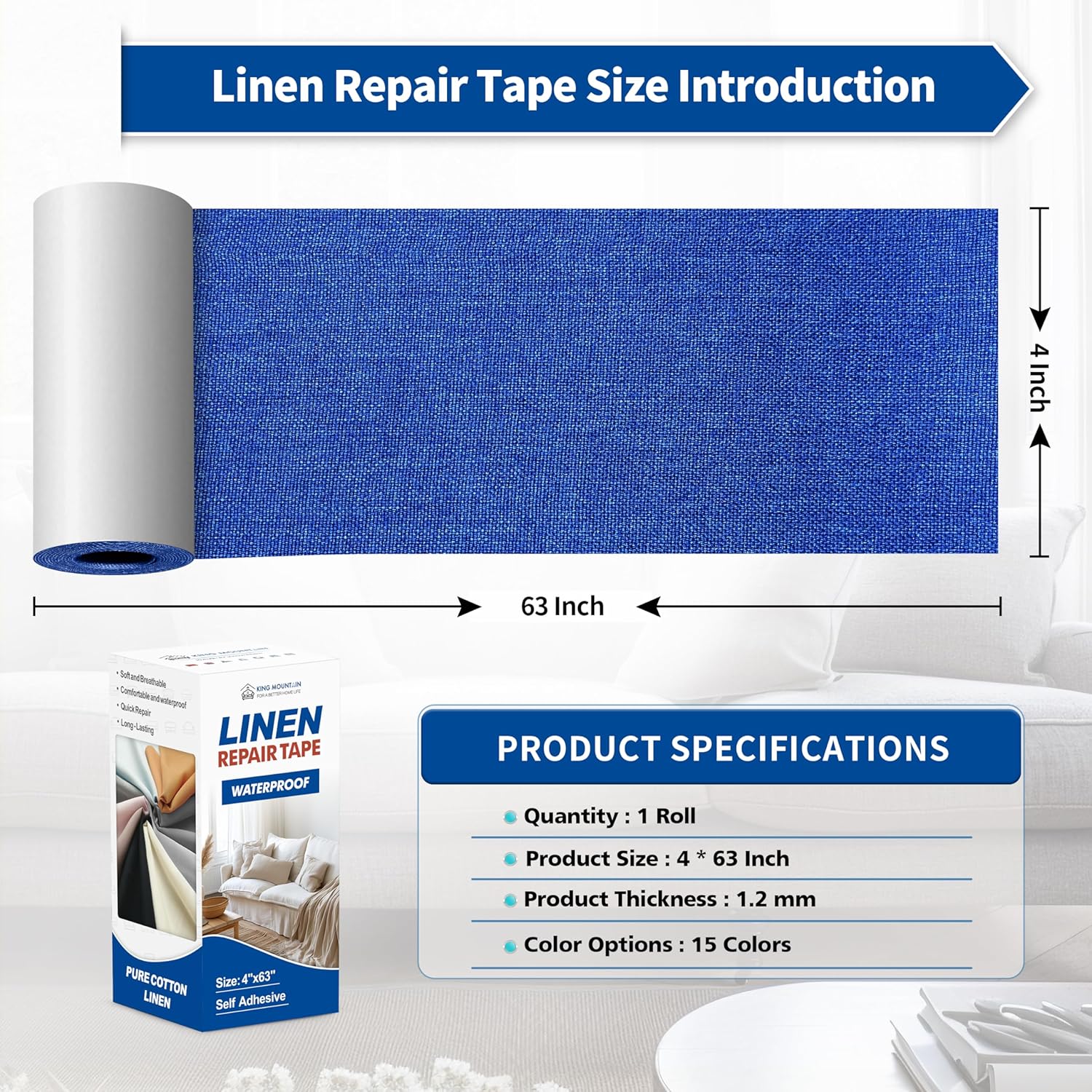 KING MOUNTAIN Linen Repair Patches, Self-Adhesive Fabric Patches, 4 X 63 inch Extra Size, Multi Color, Can be Used for Sofa Repair and Linen Clothes Repair (Navy Blue)
