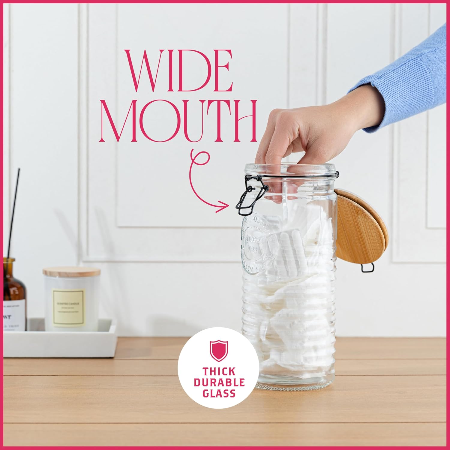 kitchentoolz Glass Storage Canister with Airtight Clasp Lids - Set of 3 Mason Jar Storage Containers for Cereal, Coffee & Rice - 56 Ounce Pantry Organizing Canister Set