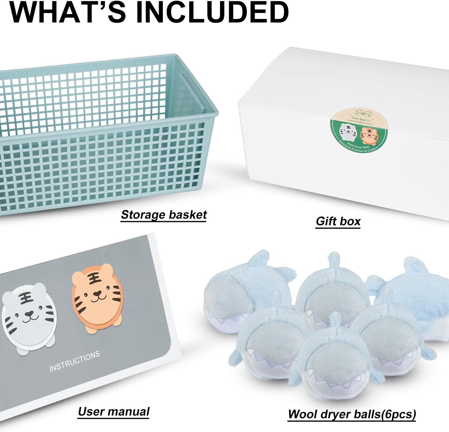 - Lovely whale shark appearance. Deeply loved by mothers and children. Besides drying clothes, they also can be used as toys for kids and pets.These super cute wool dryer balls are perfect gift any occasion. (Baby showers, Wedding gift, Birthday gift, Christmas gift, Thanksgiving gift, Easter gift, Mothersβ day gift, Graduation gift, housewarming, and more).Perfect Gift Set--- Wool dryer balls make for a unique and thoughtful gift for anyone who is environmentally conscious and conscious about the quality of their laundry. They are the best gift for your mum on Mother's Day! The Animal pattern design of these balls will be attractive to kids and get them interested in the laundry routine.