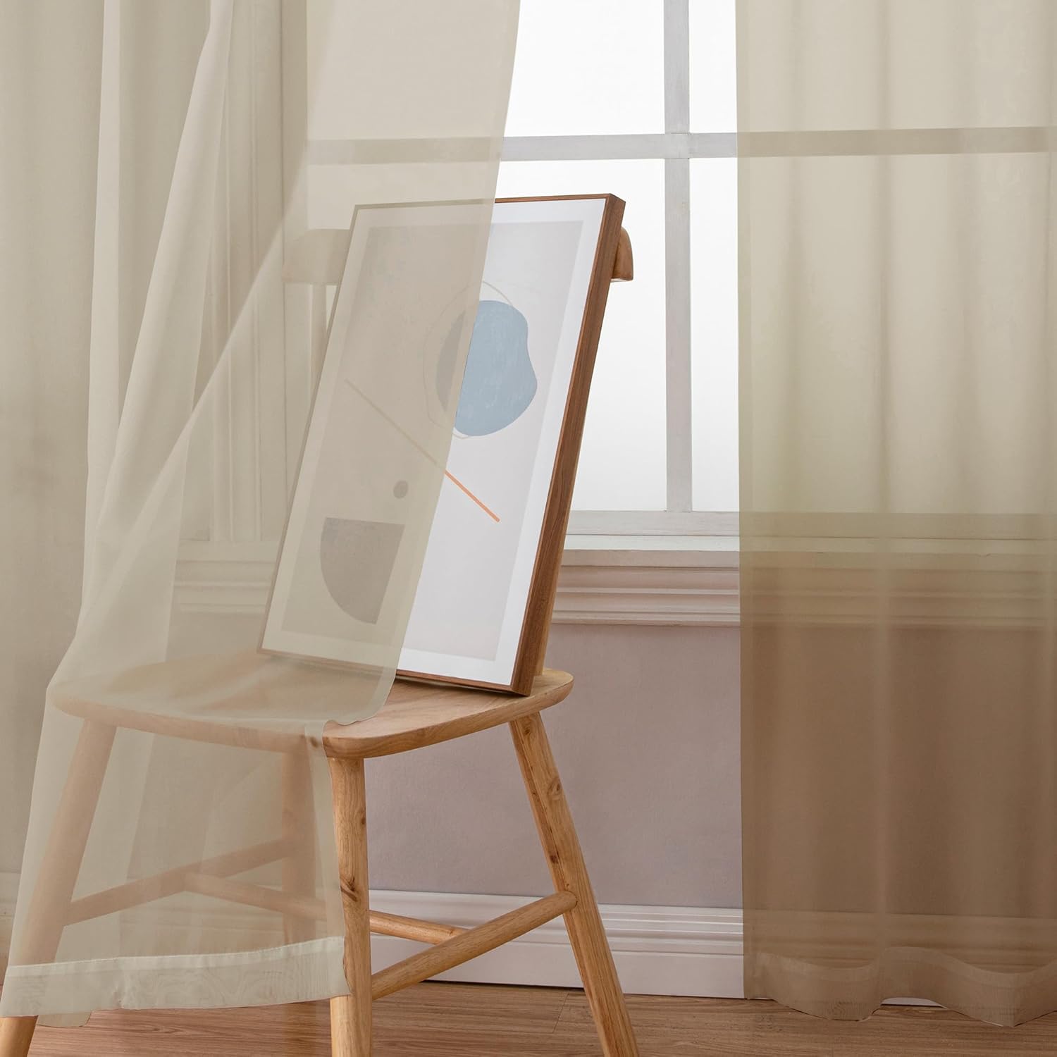 Chyhomenyc Sheer Taupe Curtains 90 inches Long 2 Panels, Light Filtering Soft Airy Solid Elegant Voile Window Treatment Drapes for Bedroom Living Room Wedding Party Decor, 42 Wx90 L Inches