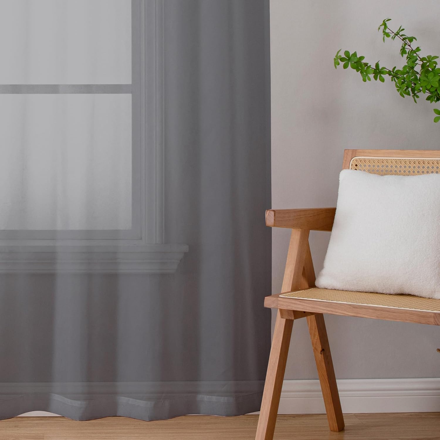 Chyhomenyc Sheer Charcoal Grey Curtains 90 inches Long 2 Panels, Light Filtering Soft Airy Solid Elegant Voile Window Treatment Drapes for Bedroom Living Room Wedding Party Decor, 42 Wx90 L Inches