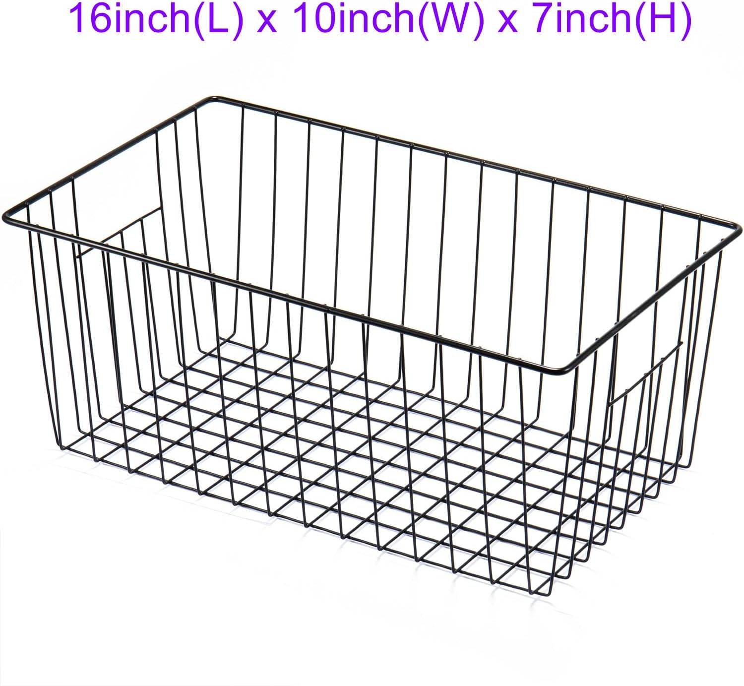 - Dimensions - 16in(L) x 10in(W) x 7in(H). These freezer basket bins are especially designed for upright freezers. For bigger 16-21 cu. ft freezer, 2 baskets for a shelf. For the small 13-14 cn. ft, one for every shelf or even turn the basket the other direction. Pls measure twice before purchasing.