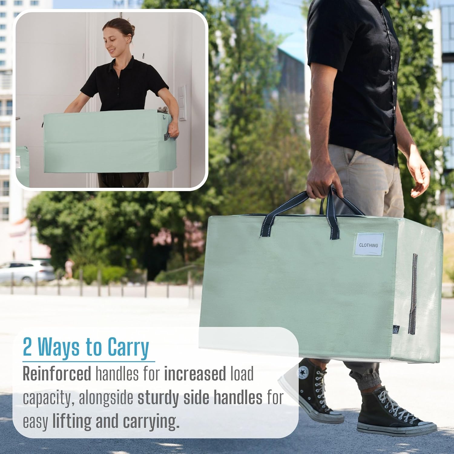 VENO 6 Pack Moving and Storage Bags, Heavy Duty, Alternative to Moving Boxes, Large Packing Totes Supplies for College Dorm Room with Zipper for Clothes, Wide Open Design (Shiny Light Green, 6 Pack)