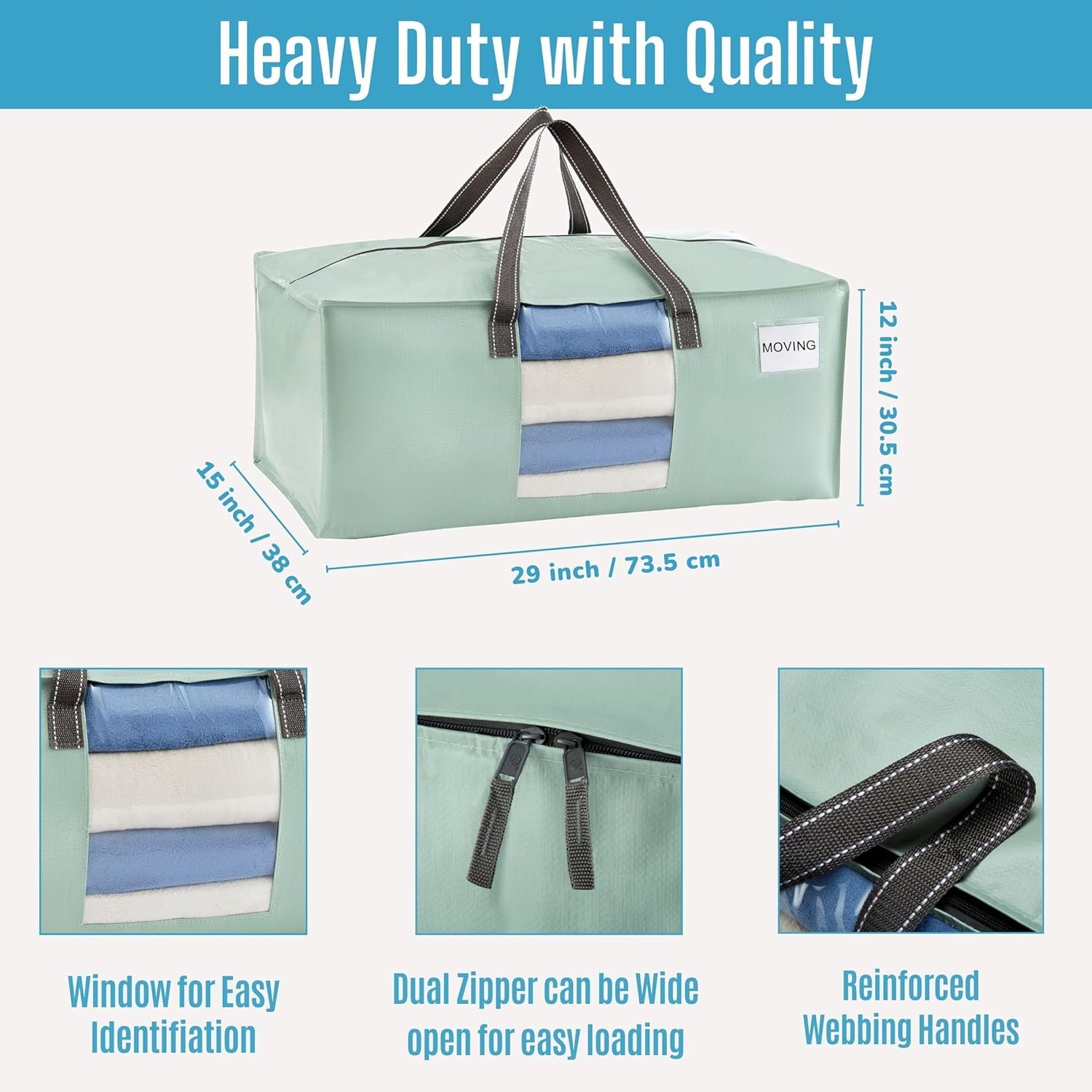 - Instant Identification – Featuring a transparent (window) design alongside a handy tag pocket, this storage bag simplifies identifying the contents within, ensuring swift access to your stored items, be it college dorm essentials, camping gear, or various household items. Ideal for moving, organizing, and storage tasks, this versatile bag guarantees that no matter where you store your belongings, they remain neatly organized and easily identifiable.