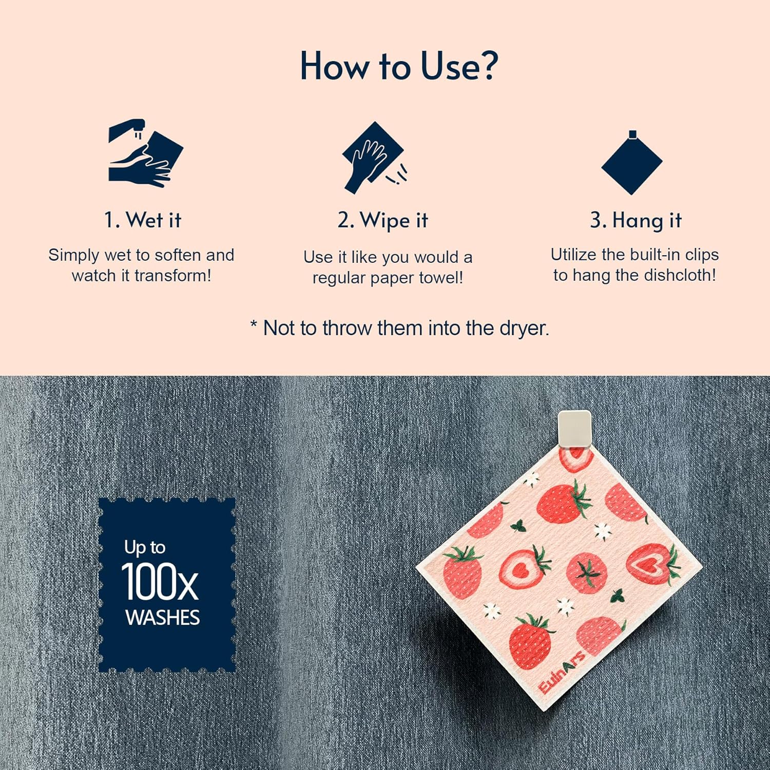 - Washable and Resuable: Tested to be reusable up to 200 times, our swedish dish rags for washing dishes can replace up to 17 rolls of paper towels. Affordable, durable, and easy to care for, they offer a long-lasting alternative to disposable paper towels