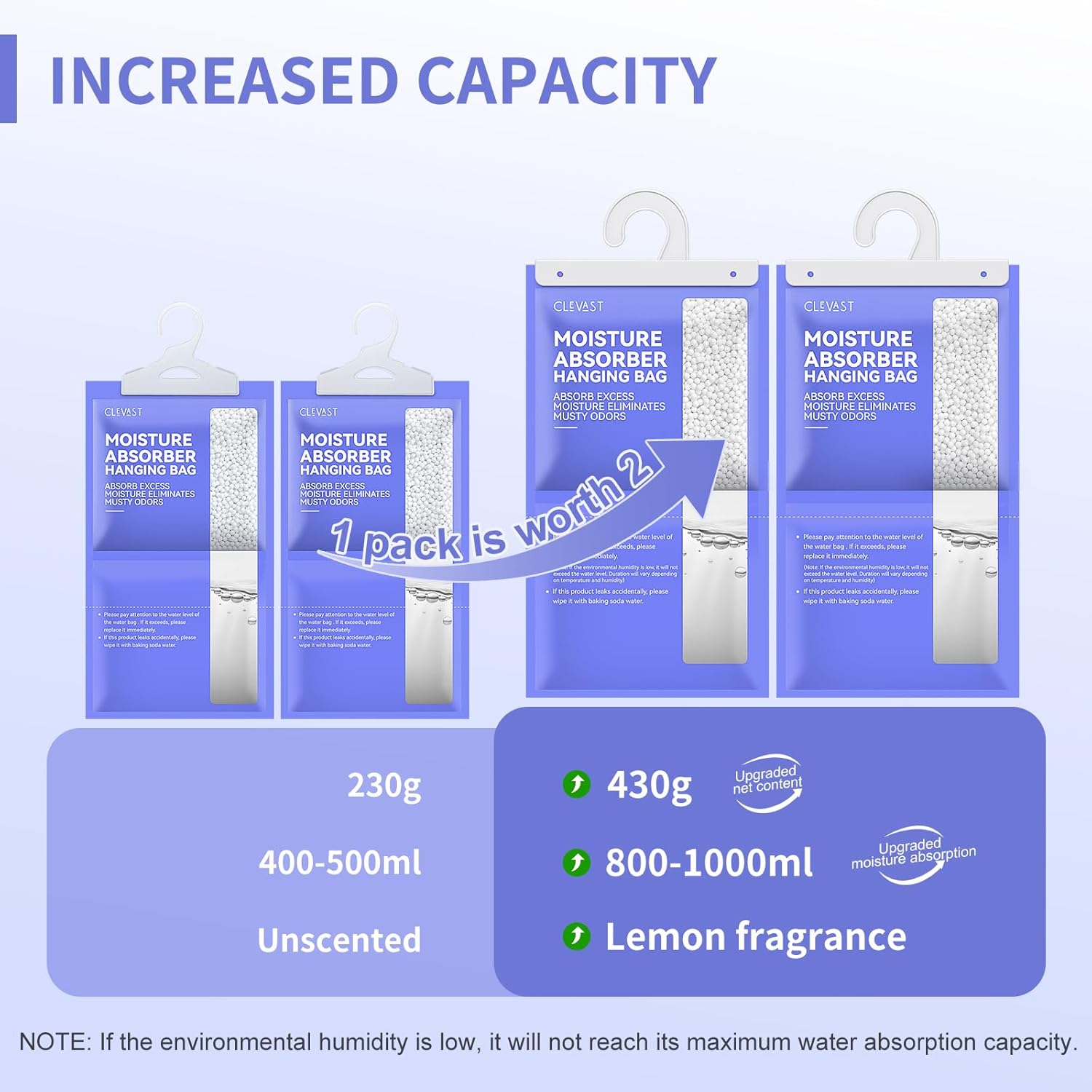 CLEVAST Moisture Absorbers Packets, 15.2 OZ, 6 Pack, Lemon Fragrance Big Dehumidifier Bags for Closet, Hanging Humidity Absorber in Wardrobes, Bedrooms, Bathrooms