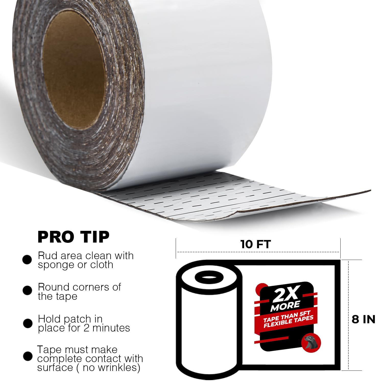 White RV Roof Sealant Tape, 8" x 10' Waterproof Repair Seal Tape – Extra Thick, UV-Resistant, Weatherproof Patch for Permanent Leak Sealing on RVs, Trailers, and Mobile Homes