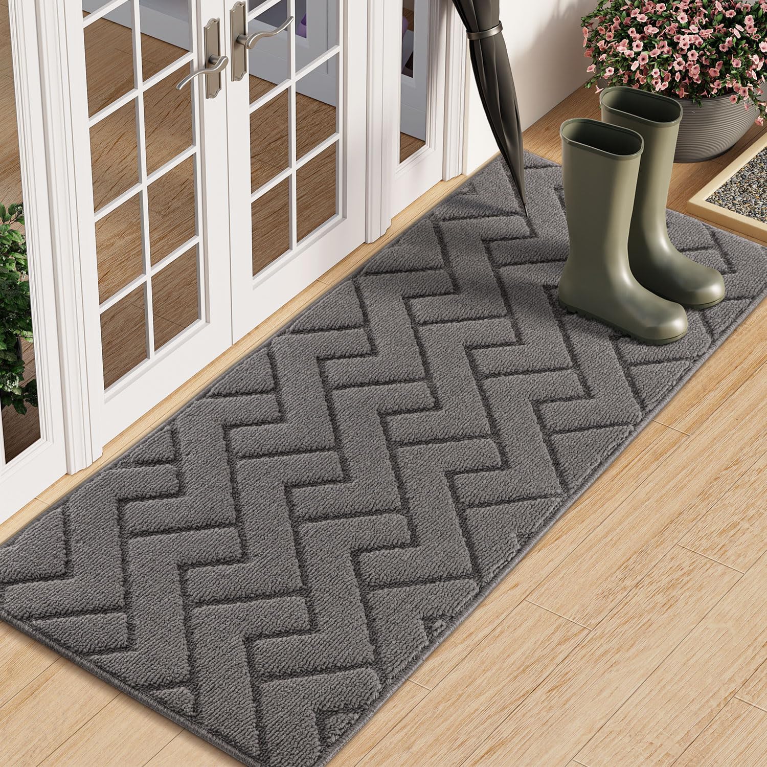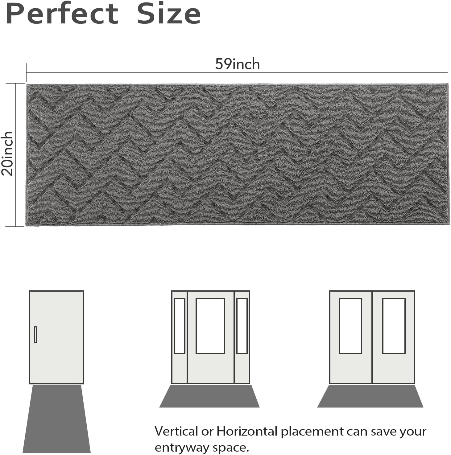 hicorfe Indoor Doormat,Front Back Door Mat Rubber Backing Non Slip Door Mats 20"x59" Absorbent Resist Dirt Entrance Doormat Inside Floor Mats Entryway Washable Low-Profile for Patio,Garden(Grey)