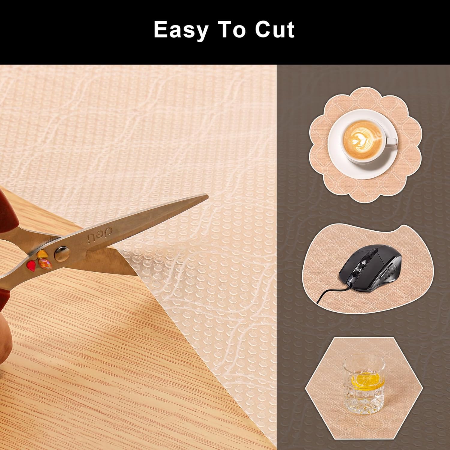 - PREMIUM SHELF LINER: The cabinet liners for shelves is made of a safe food-grade EVA material. The shelf liners can directly contact fruits and vegetables, as well as protect shelves, drawers, cabinets and refrigerators from scratching.It also has an anti-slip effect to protect the contents inside from collision and damage.