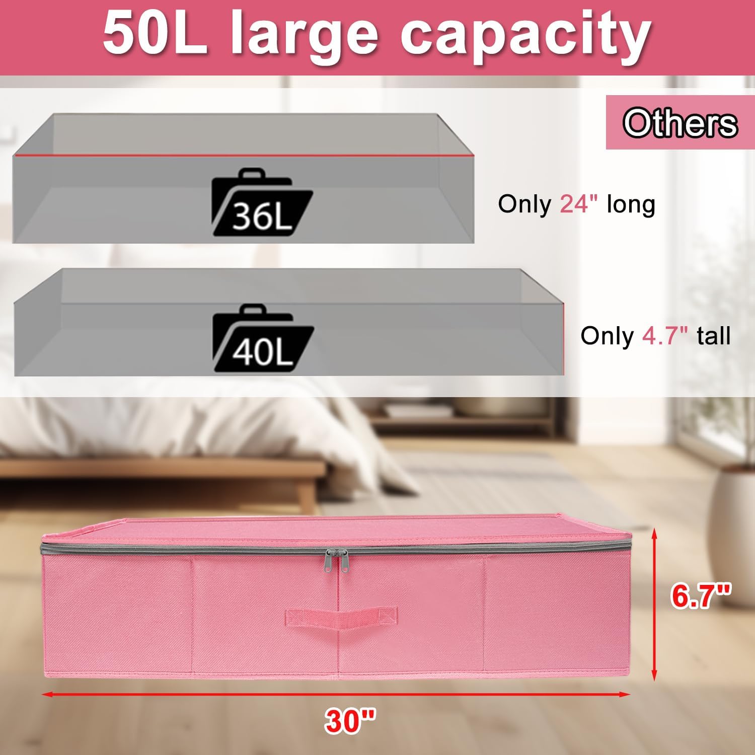 punemi Under Bed Storage Containers, Pink Underbed Storage With Rigid Side/Bottom Support, Closet Organizers And Storage Bins, Blankets Clothes Comforters Storage Bag, Dorm Room Essentials For Girls