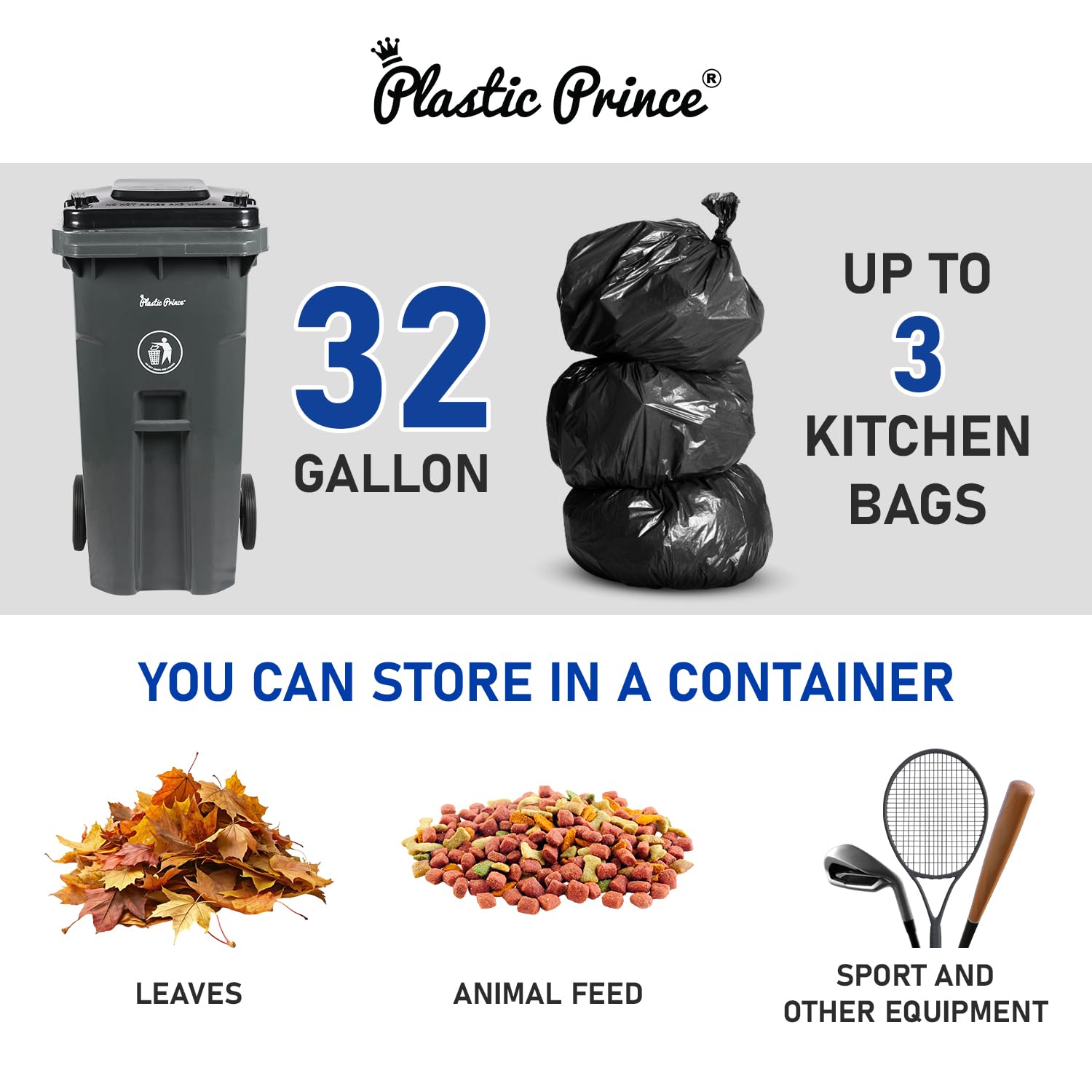 - Spacious Capacity: With a generous 32-gallon capacity, this outdoor garbage can with wheels provides ample room for storing waste, making it suitable for households, businesses, and outdoor events.
