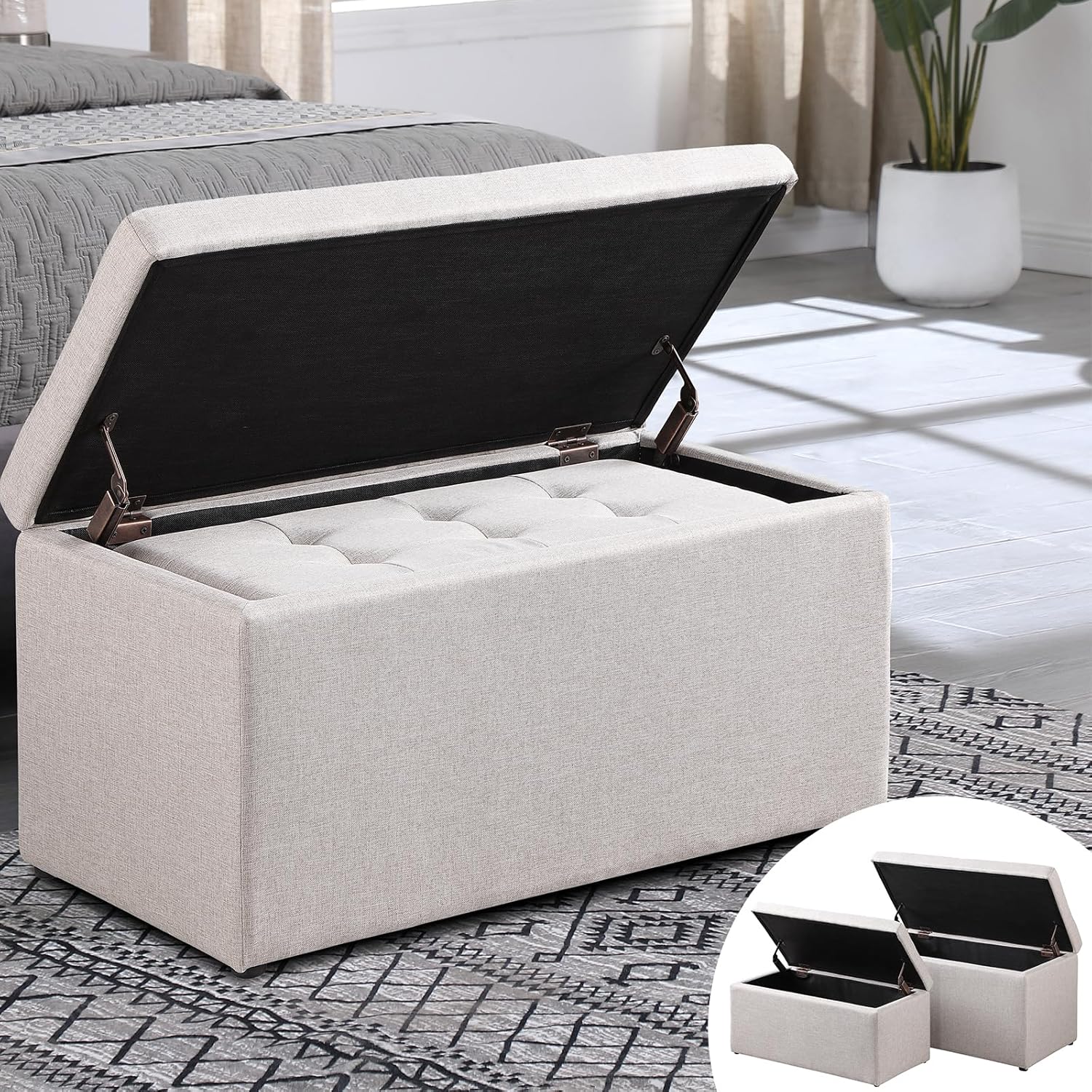 Storage Ottoman Bench with 2.56-inch Thick Seat, 31.5 inch Nesting Ottoman Set of 2, Hinged Flip Top Bench with Storage for Living Room, Bedroom, Beige