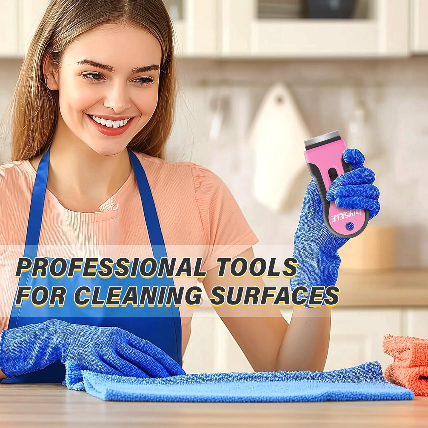 - Multi-Purpose Scraper for Cleaning: This razor scraper tool for glass is perfect for tackling tough cleaning tasks on glass, ceramic, metal, and more. It efficiently removes burnt food from stovetops, stubborn stickers from car windows, and old paint or caulk from walls and floors. Whether you're working in the kitchen, bathroom, or garage, this glass top stove scraper tool for glass provides a reliable solution for removing unwanted residues and debris.