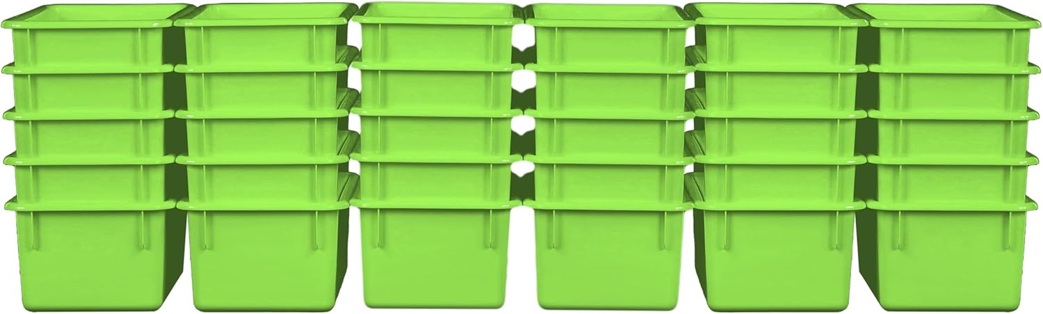 Wood Designs Cubby Storage Bin, Heavy Duty Plastic Containers for Kids Lime Green Cubby Tray Set of 30