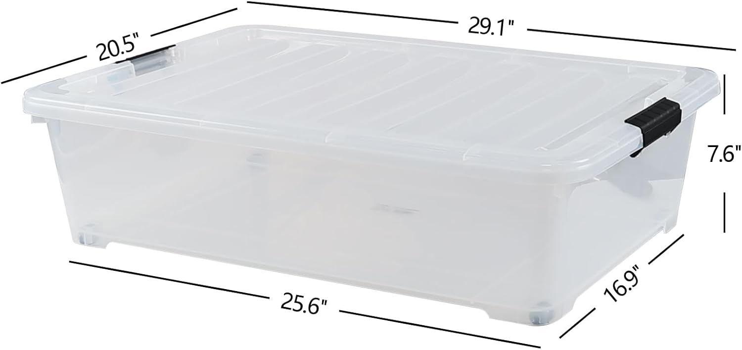 Kiddream 3-Pack 50 Quart Plastic Underbed Storage Bins with Lids/Wheels, Large Clear Storage Box
