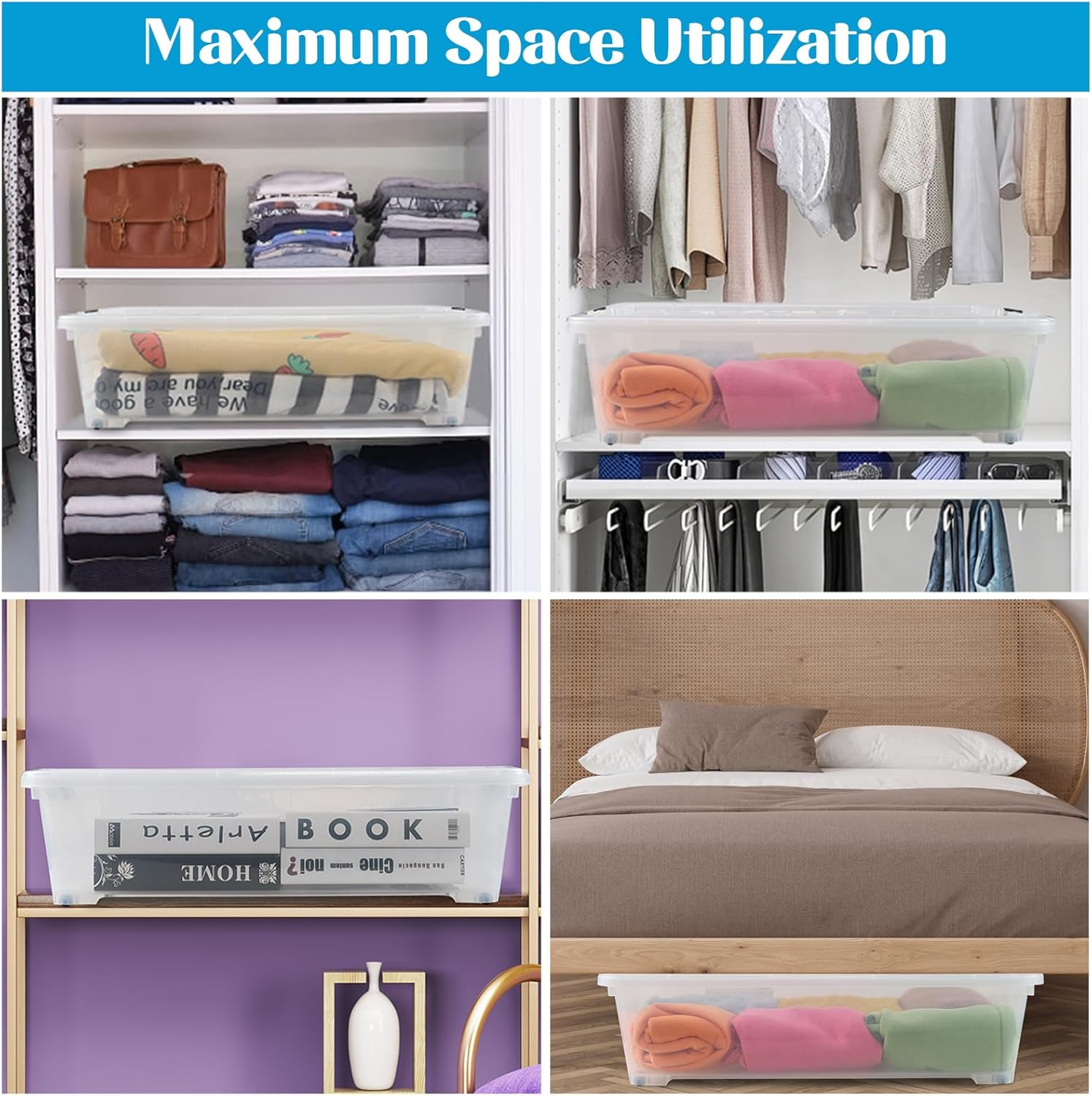 - Flat design, very suitable for under the bed, sofa, or in the wardrobe, closet and so on.