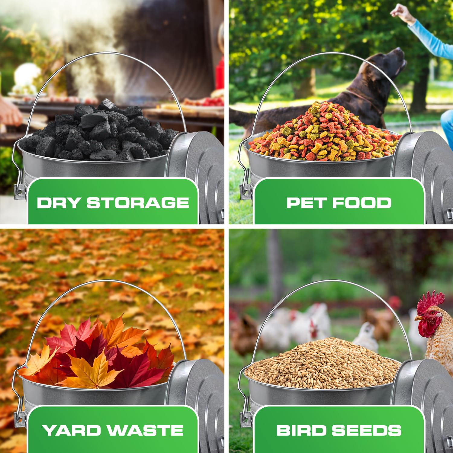 - Multipurpose Outdoor Garbage Can with Lid: Use as an ash bucket, bird seed bin, or outdoor waste container; its versatile design adapts to multiple storage and disposal needs