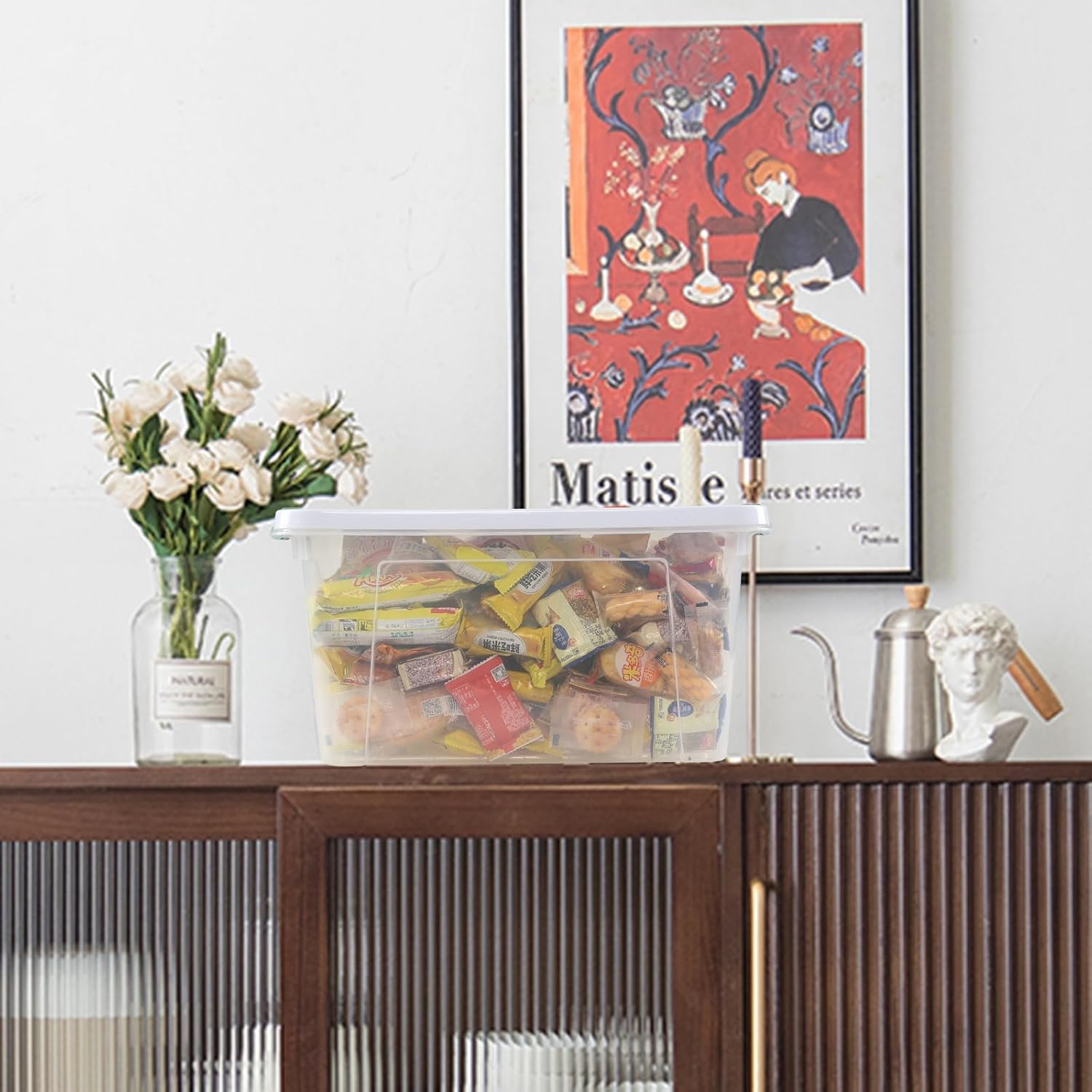 - The transparent base makes items easy to view and identify, making it easy for quick retrieval