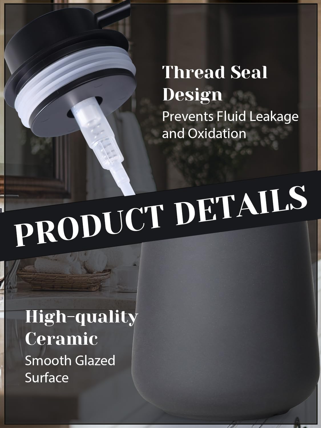 - CERAMIC SOAP DISPENSER: Natural and safe grey liquid dispenser, can add a variety of room temperature daily use liquid. Reusable, refillable and recyclable