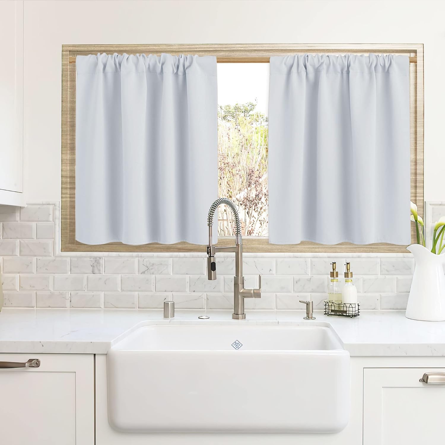 RYB HOME Blackout Curtains for Kitchen, Over Sink Privacy Curtains Window Decor, Thermal Insulating Drapes for Bathroom Cafe Bedroom Small Window, W 42 x L 24 inch, Greyish White, 2 Panels