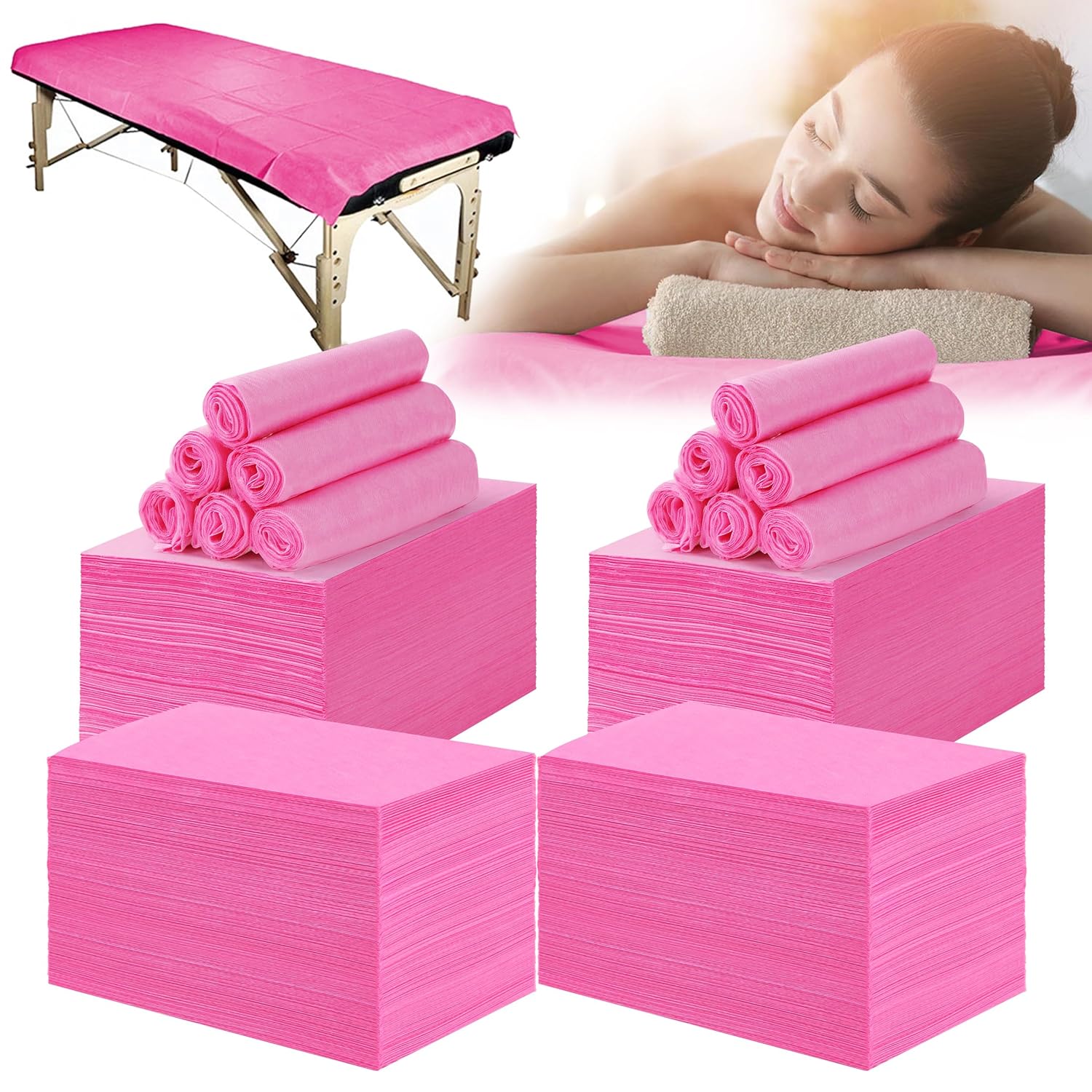 400 Pcs Disposable Bed Sheets 31" x 71" Massage Table Sheets Non Woven Fabric SPA Bed Cover Breathable for Massage Beauty Tattoos (400 Pcs Pink)