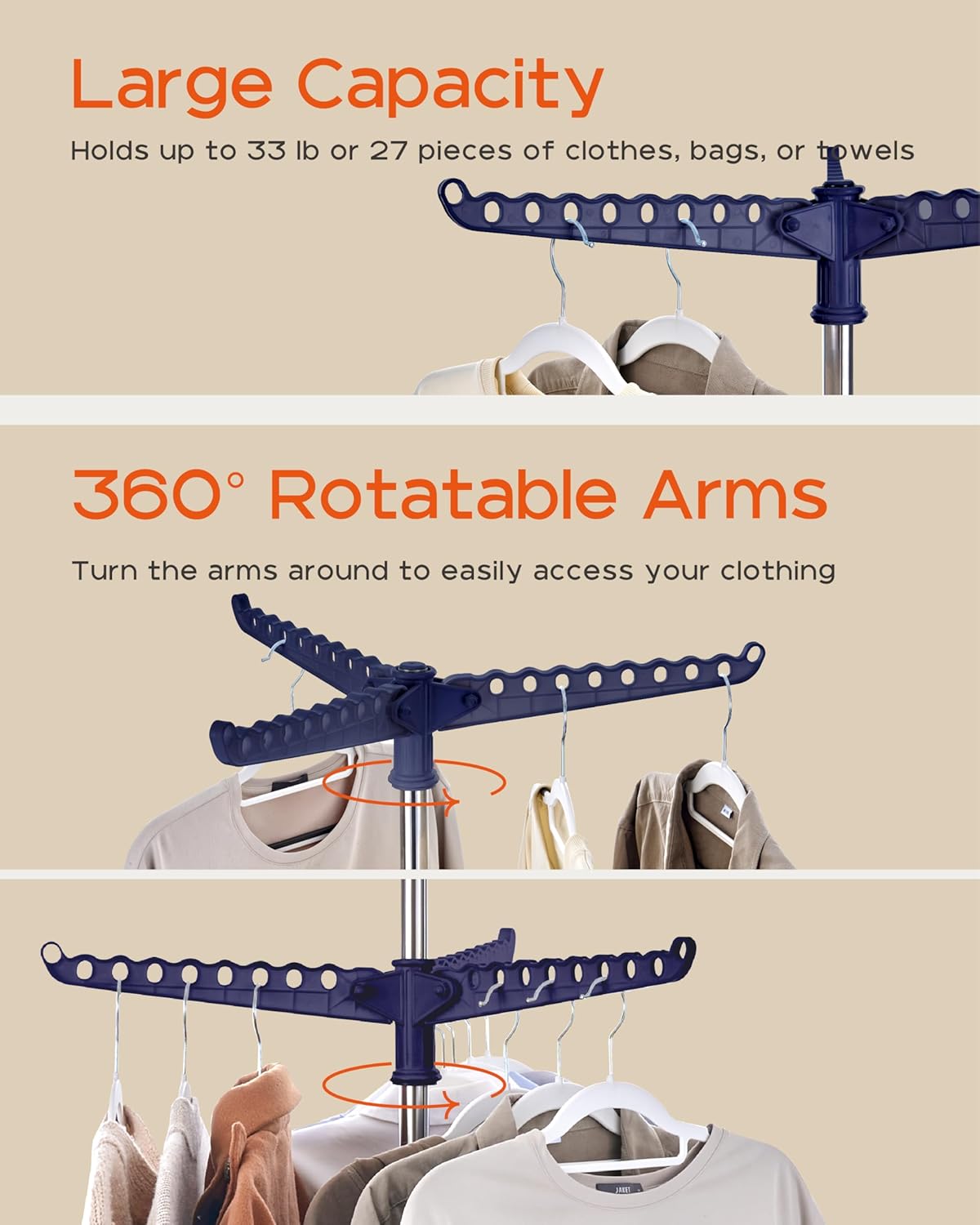 - [360 Rotating Clothes Rack] Equipped with a 360-degree swivel design, this laundry drying rack provides you with the convenience of hanging and accessing your clothes.