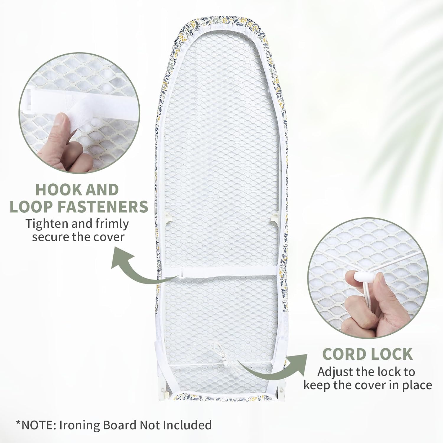 - EXTRA THICK MATERIAL FOR BETTER IRONING: This ironing board cover adopts natural breathable cotton with scorch resistant finish as cover. Using ultra thick stitched fibers, the thickness can reach 6mm. This synthetic fiber evenly radiate heat and steam, achieve high temperature ironing and safer