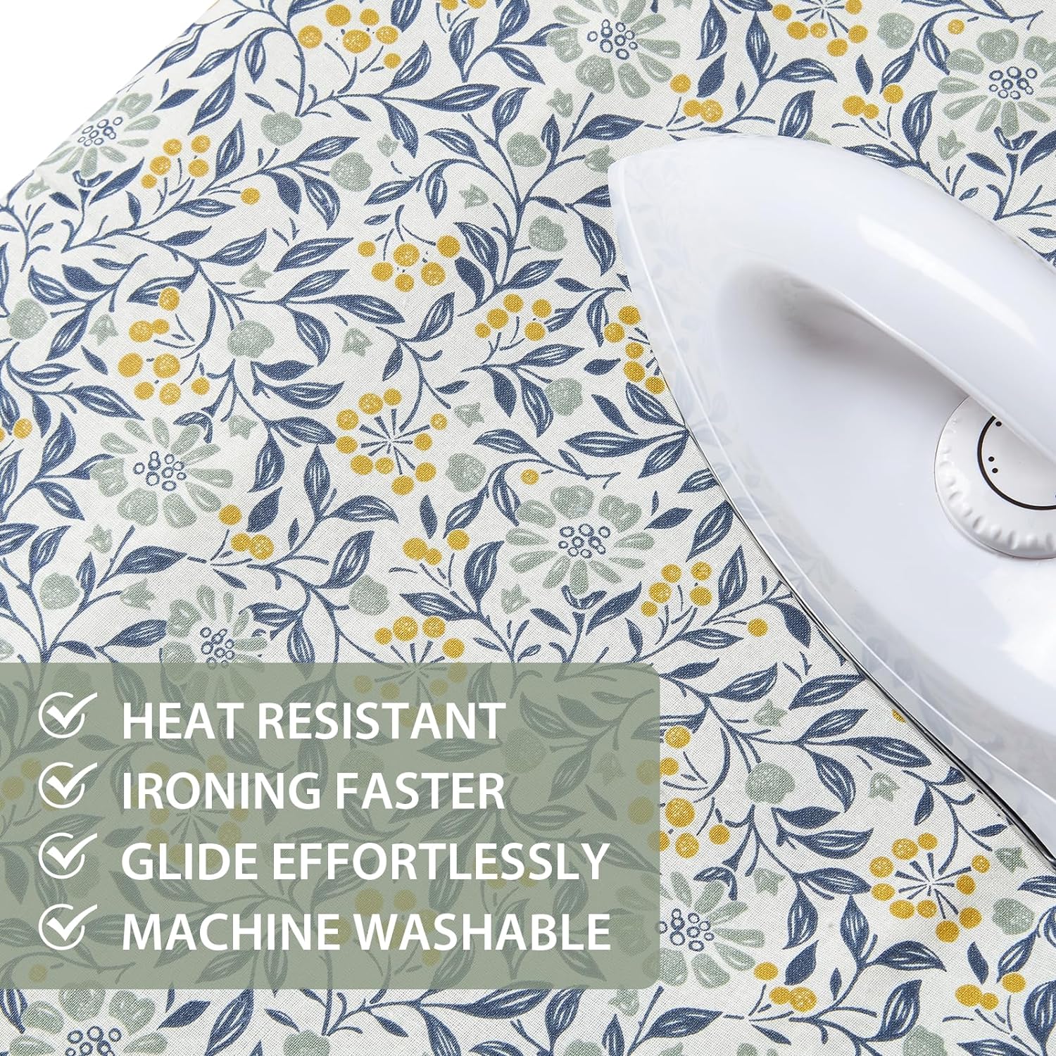 Seiritex Over The Door Ironing Board Cover 14 x 42 inch, Thick Padding and Heat Reflective with Hook and Loop Fasteners, 3 Layers Iron Board Cover (Flora)
