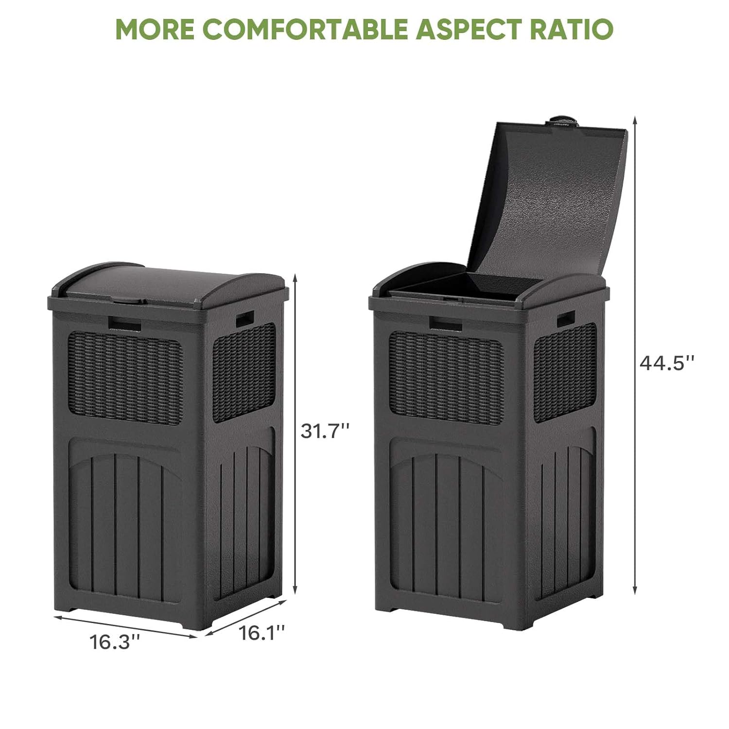 Patiowell 36 Gallon Outdoor Trash Can, Resin Outdoor Garbage Can with Lid for Patio, Backyard, Deck, Black (2 Pack