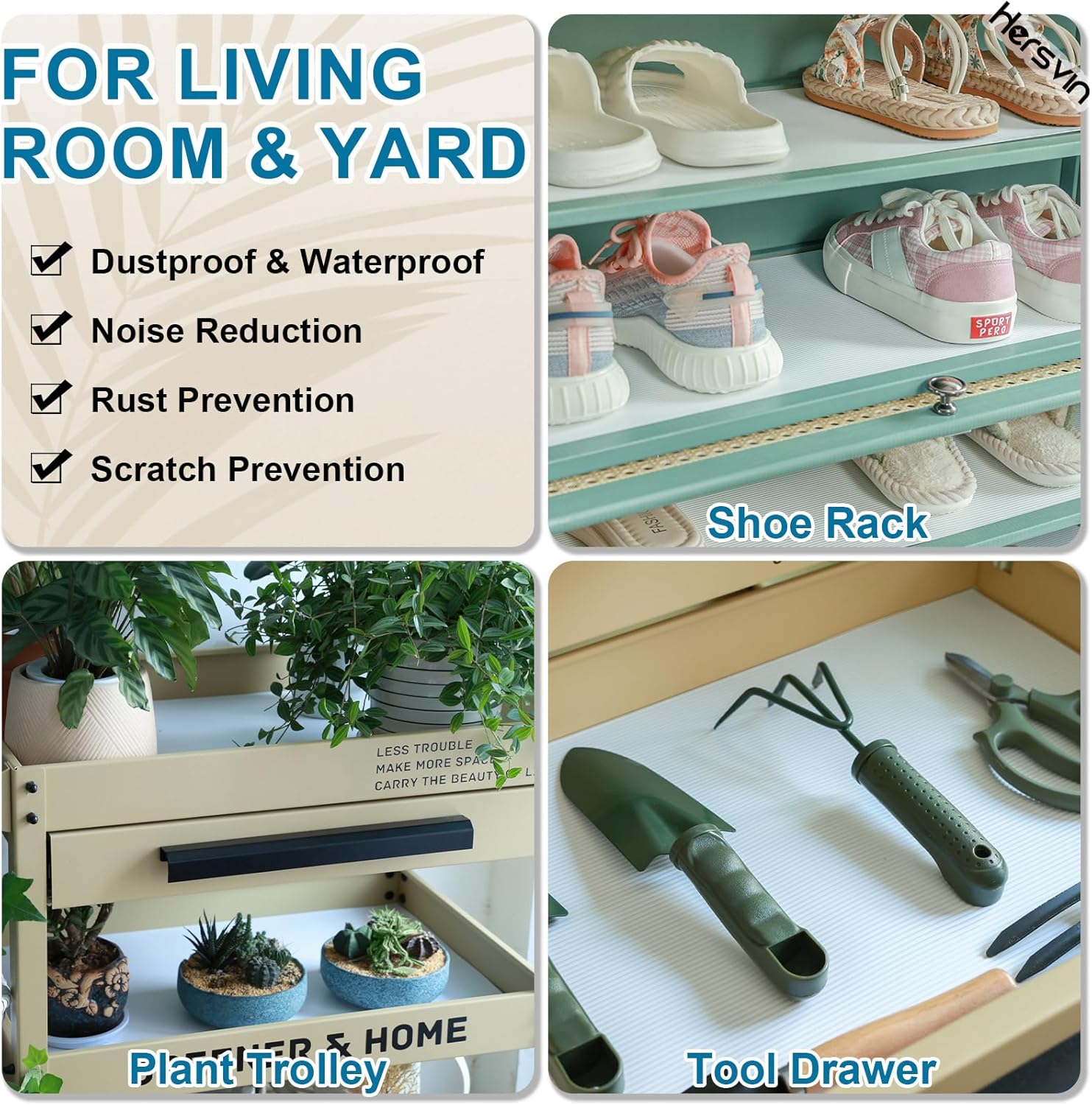 - WIDE APPLICATION: Various uses in kitchen cabinet, cupboard, drawer, shelves, fridge, bookshelf, shoe rack and for other housewares. Ideal for protecting surfaces of glass, wood, plastic, metal etc. Reduce frequency of wiping protected surfaces.